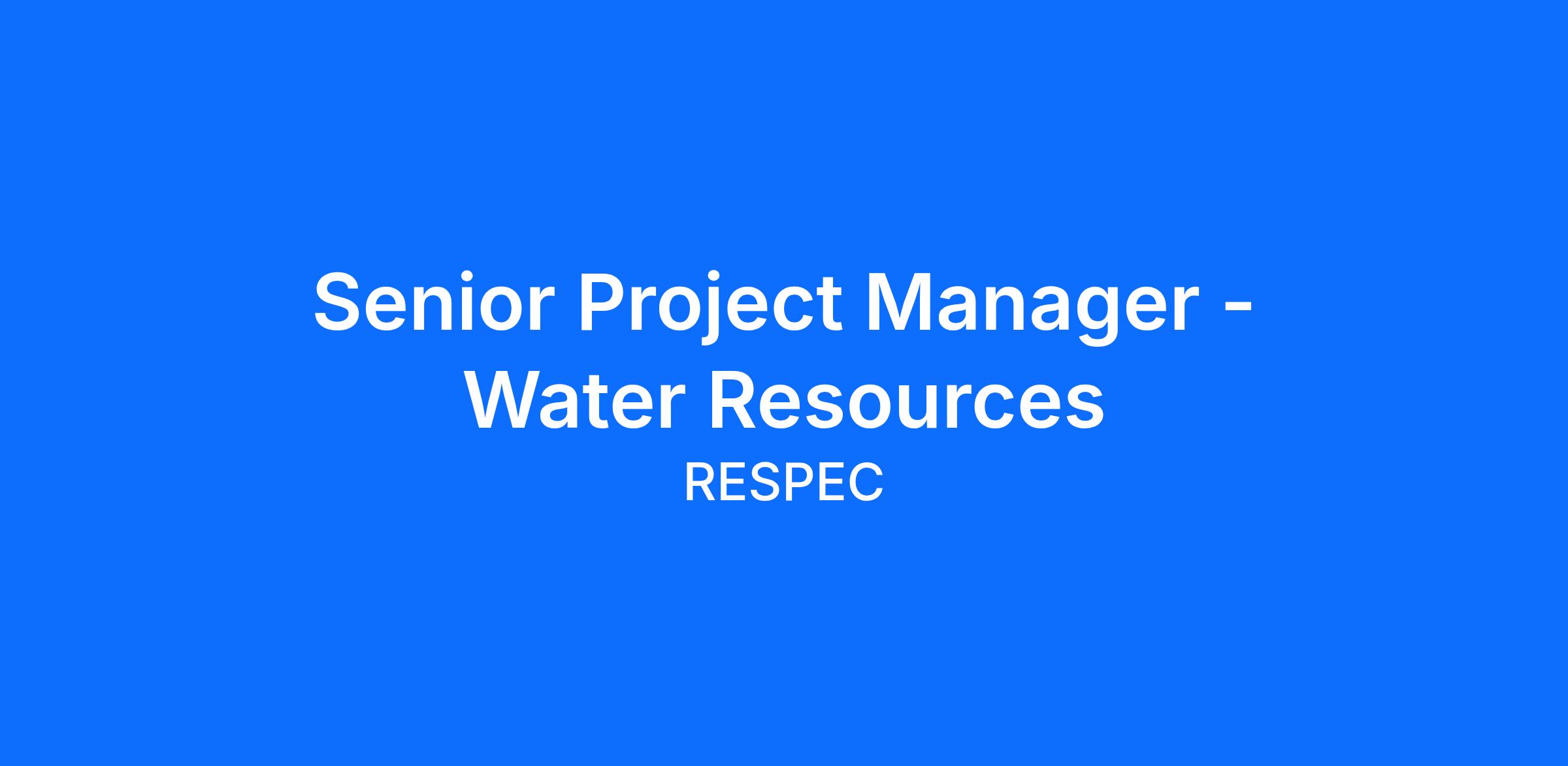 Job Description: RESPEC, seeks a Water Resource Senior Project Manager in our Water market sector, located in Denver, CO.