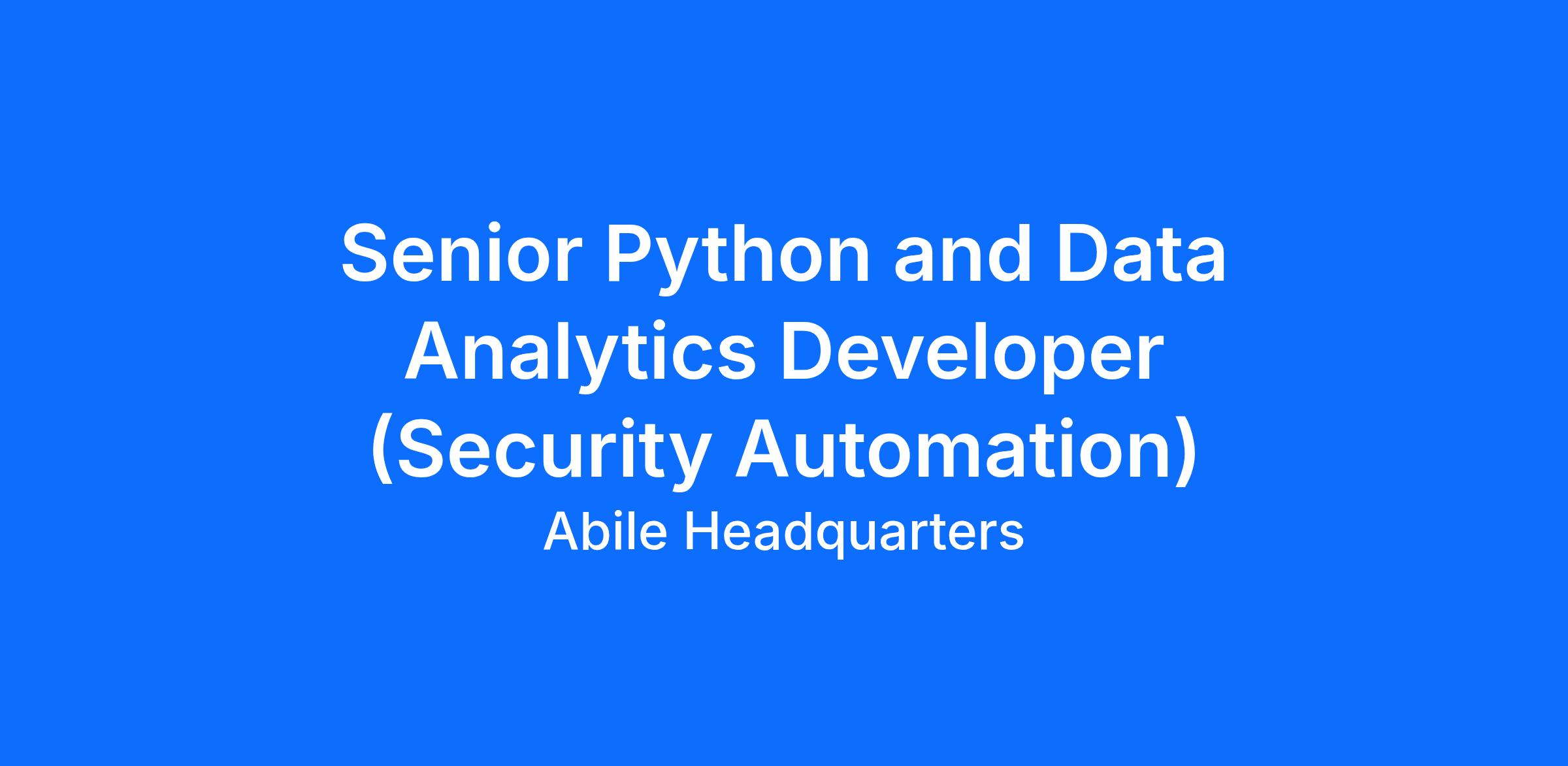 Abile Group is seeking a Senior Python/JavaScript Developer to join our rapidly growing and innovative cybersecurity team!