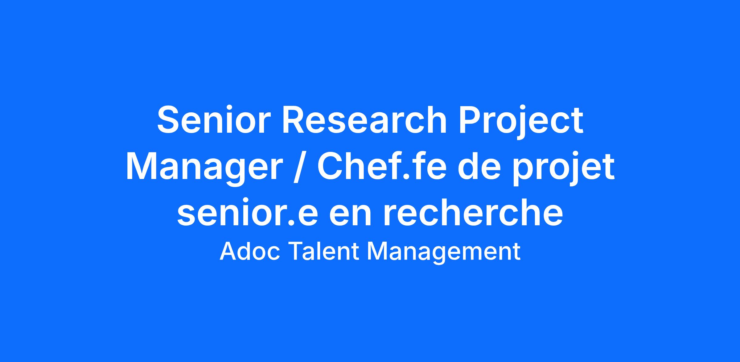 Nous recherchons un.e Chef.fe de projet senior.e en recherche, rôle essentiel dans la gestion des opérations scientifiques et le développement interne de son pipeline. La personne recrutée travaillera étroitement avec les équipes exécutive, scientifique et opérationnelle, afin de garantir la livraison des actifs principaux.