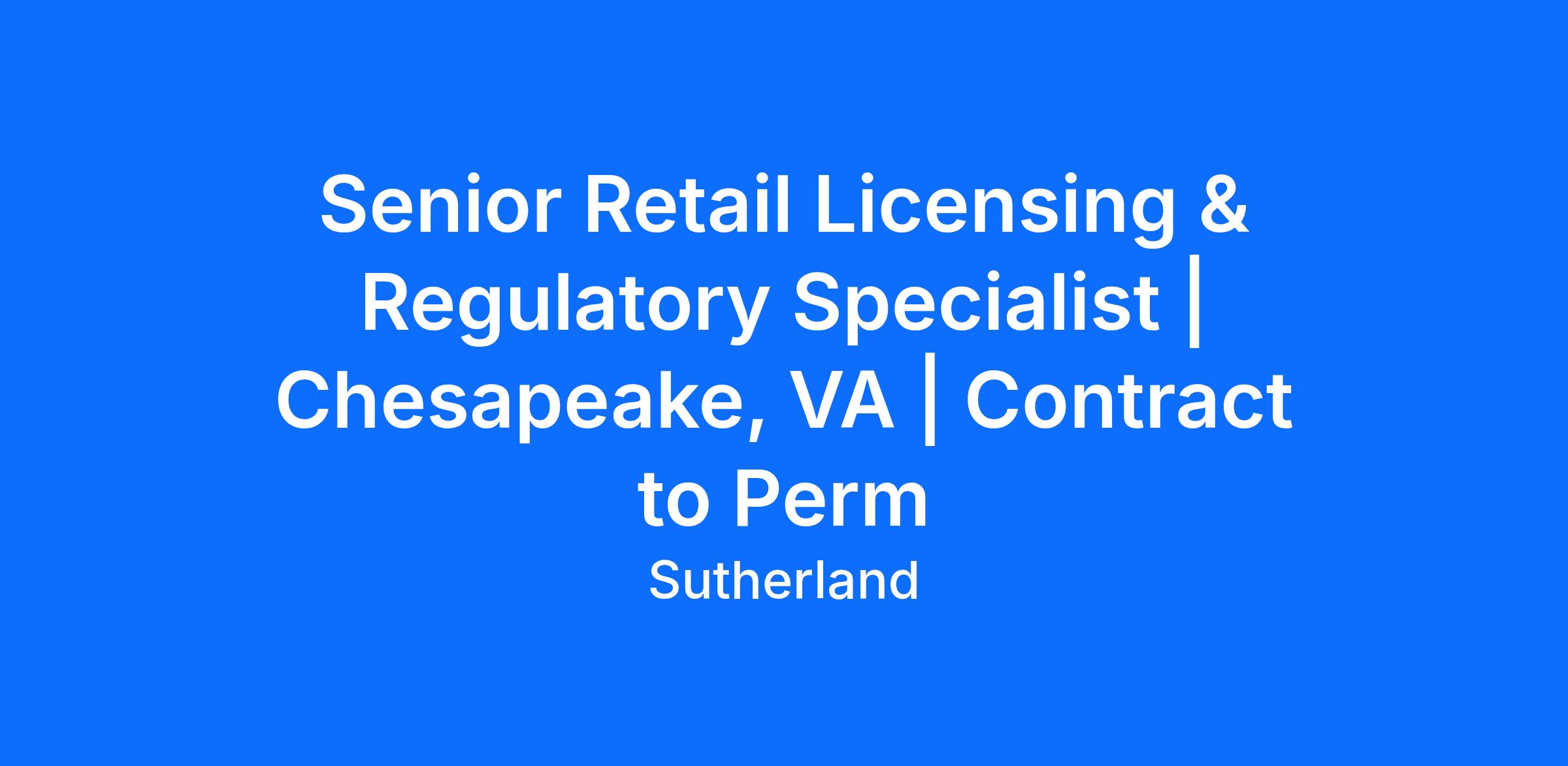 Sutherland is looking to add a skilled Senior Retail Licensing & Regulatory Specialist to support a discount retail program! If you have 5+ years of direct experience managing multi-jurisdiction license and permit renewals for a large national retailer, restaurant, or quick-service chain - we want to hear from you!