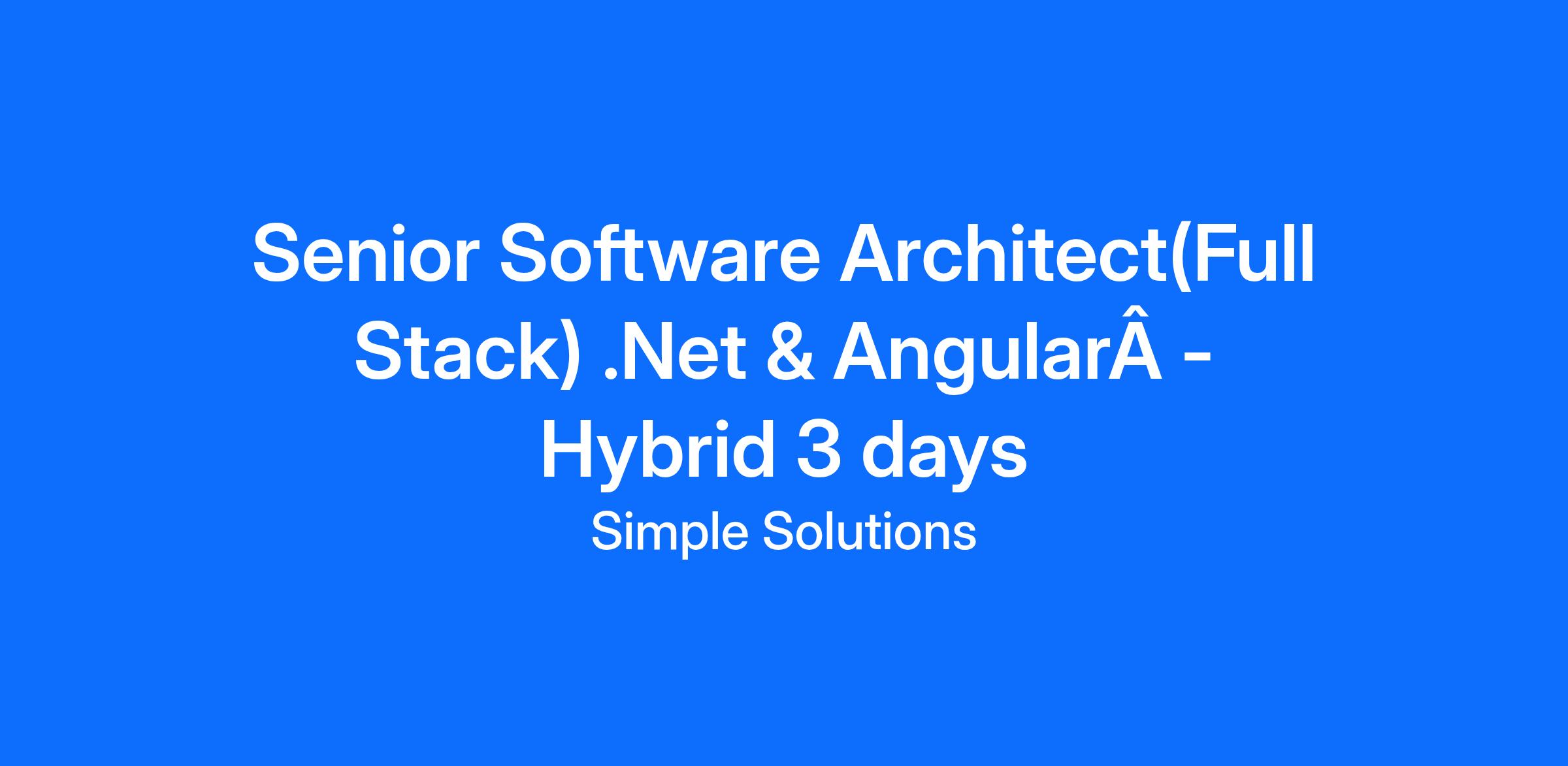 <\/html>"}}],"isMobile":false,"iframe":"true","jobType":"Contract","applyName":"Apply Now","zsoid":"662490260","FontFamily":"PuviRegular","jobOtherDetails":[{"fieldLabel":"Industry","uitype":2,"value":"Financial Services"},{"fieldLabel":"Job Opening ID","uitype":111,"value":"ZR_2806_JOB"},{"fieldLabel":"Work Experience","uitype":2,"value":"15+ Years"},{"fieldLabel":"Salary","uitype":1,"value":"65\-75"},{"fieldLabel":"City","uitype":1,"value":"Dallas"},{"fieldLabel":"State\/Province","uitype":1,"value":"Texas"},{"fieldLabel":"Zip\/Postal Code","uitype":1,"value":"75201"}],"headerName":"Senior Software Architect(Full Stack) .Net & Angular \- Hybrid 3 days","widgetId":"441940000000072311","isJobBoard":"false","userId":"441940000000194003","attachArr":[],"customTemplate":"3","isCandidateLoginEnabled":true,"jobId":"441940000104174973","FontSize":"15","googleIndexUrl":"https:\/\/simplesolutions.zohorecruit.com\/recruit\/ViewJob.na?digest=y7aAKF2qOzvLOXeqB8tAB74sO8PtGwpcelGGybw@zrI\-&embedsource=Google","location":"Dallas","embedsource":"CareerSite","indeedCallBackUrl":"https:\/\/recruit.zoho.com\/recruit\/JBApplyAuth.do","logoId":"60ly0a8d0c6dd592942c4b0bb6d05adacee99"}