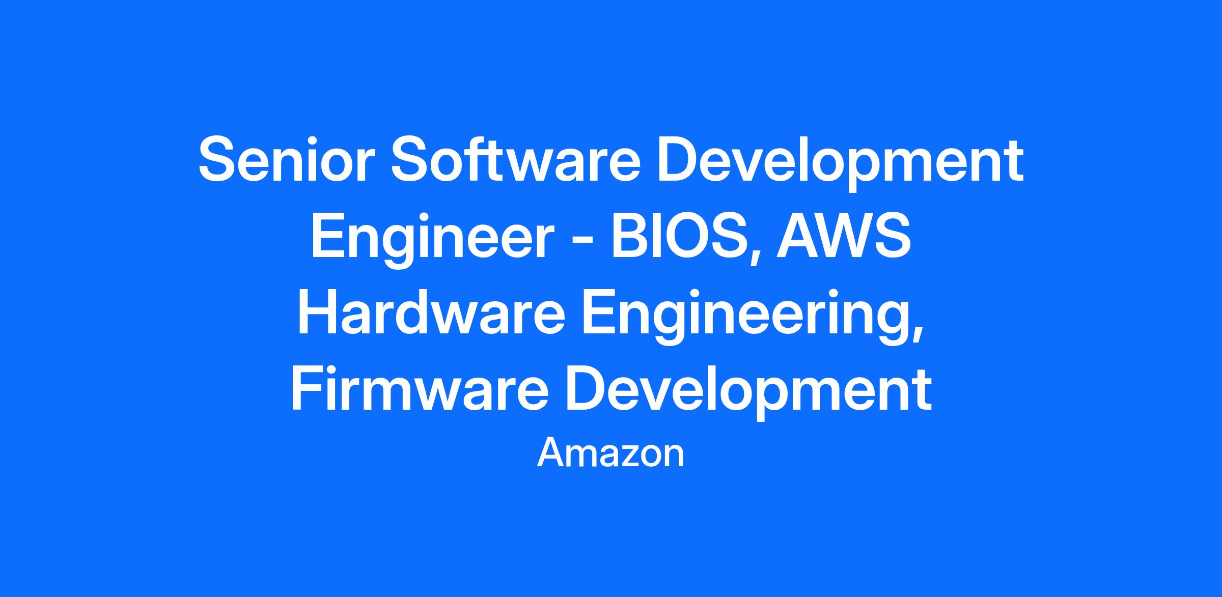 The ideal candidate for this role will be an innovative self-starter. You will be a software expert with deep knowledge in server firmware. You will gain a strong understanding of our server firmware stack, and analyze it in its current and future context. You will use comprehensive knowledge of the system in your projects to find the best solutions to multi-factor problems. You will work with engineers across the company as well as external companies and lead development efforts. You will collaborate with internal and external development engineers (architecture, hardware, validation, software services). AWS Engineers are shaping the way people use computers and designing the future of cloud computing technology – come help us make history!