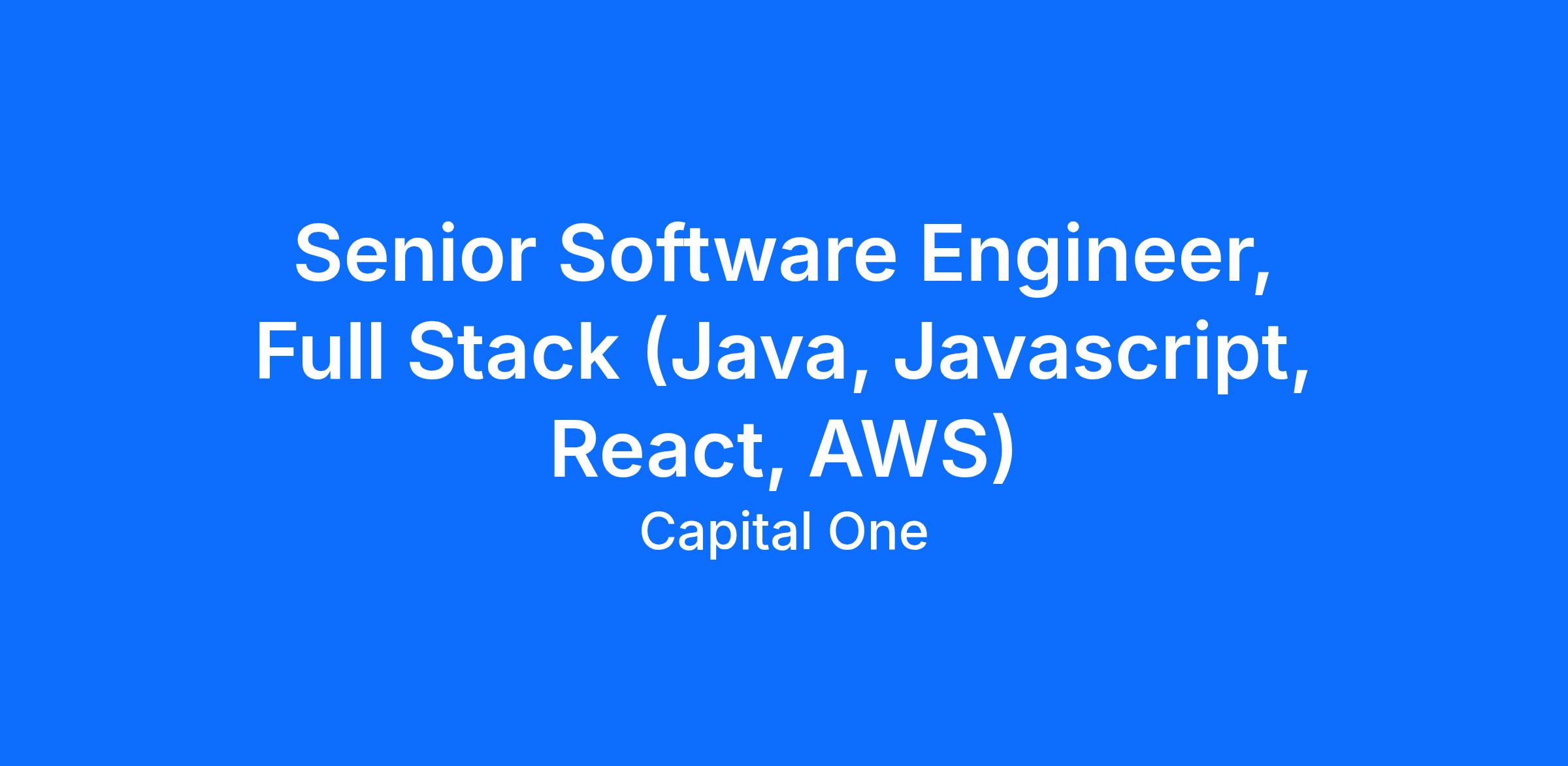 Senior Software Engineer, Full Stack (Java, Javascript, React, AWS)