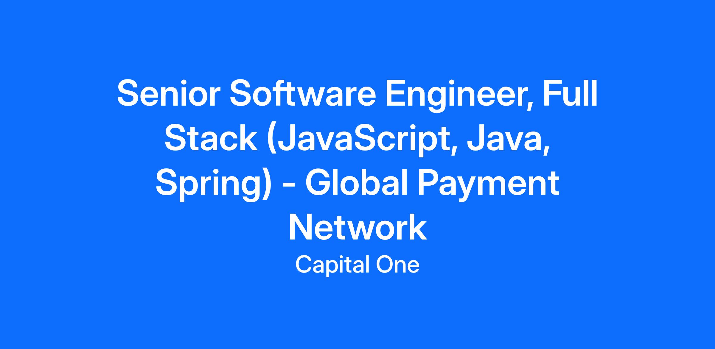Senior Software Engineer, Full Stack (JavaScript, Java, Spring) - Global Payment Network