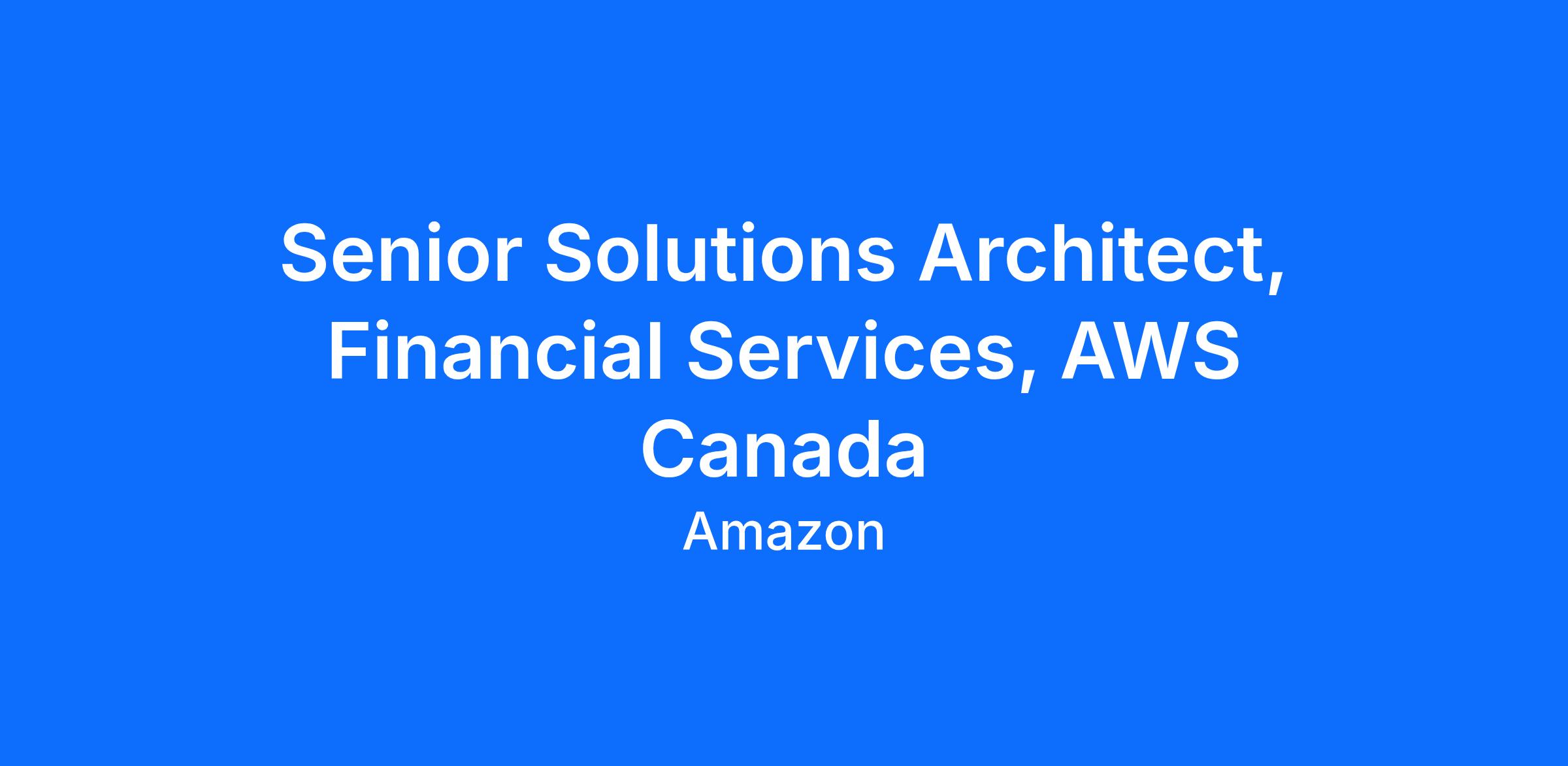 At AWS, we believe in thinking big so you should be motivated to be dynamic and creative, and willing to take on any challenge that makes a big impacts to the business and help build the future with us. AWS is looking for an experienced Senior Solutions Architect to help advise our Financial Services & Insurance (FSI) customers on how to best adopt and leverage the value of AWS technology. This is an ideal role for someone with experience in the FSI industry, knowledge of financial services applications and infrastructure, and a solid understanding of the transformative value cloud technologies can bring.