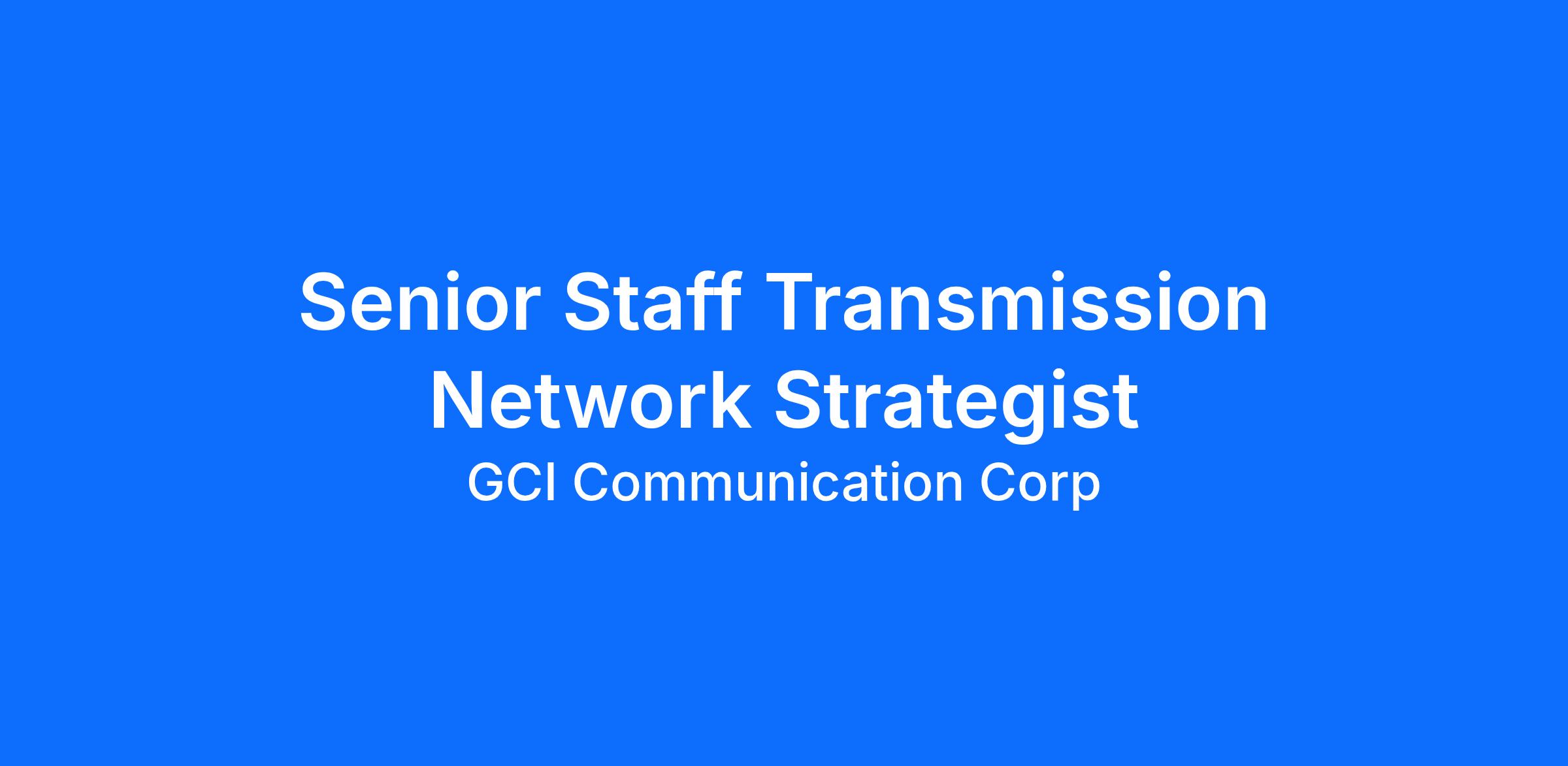 GCI's Senior Staff Transmission Network Strategist will develop short and long-term transmission network strategy that drives innovation, optimizes capacity, and aligns with broader network goals and enterprise strategy. Functional leadership role expected to perform at high levels throughout the company, interacting with directors, senior directors, and vice presidents. Serve as Subject Matter Expert (SME), technical consultant, and perform the role of Lead Architect for major and highly complex company initiatives. |