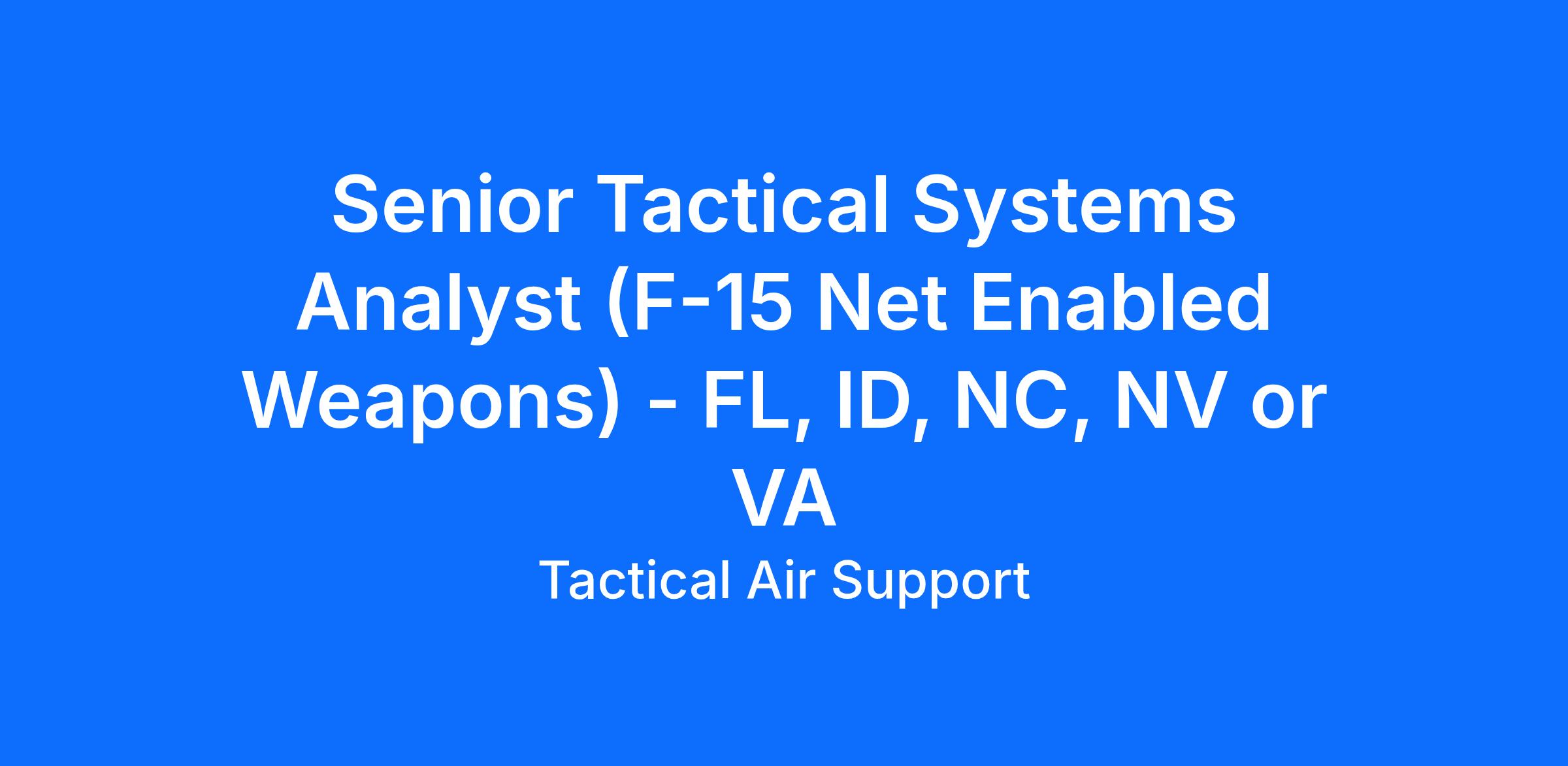 Senior Tactical Systems Analyst (F-15 Net Enabled Weapons)