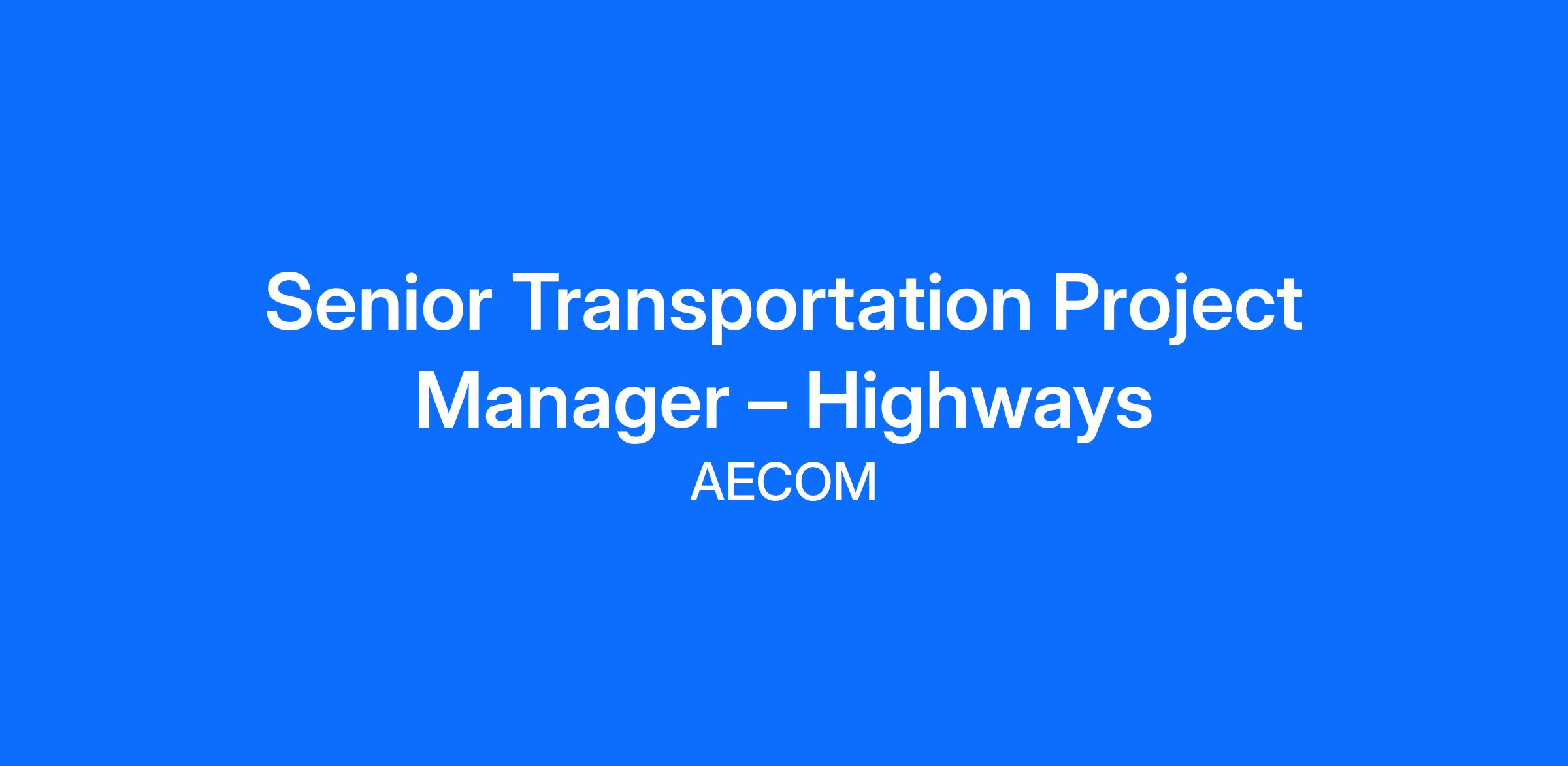 AECOM is seeking a Senior Transportation Project Manager – Highways to be based in Minneapolis, MN.