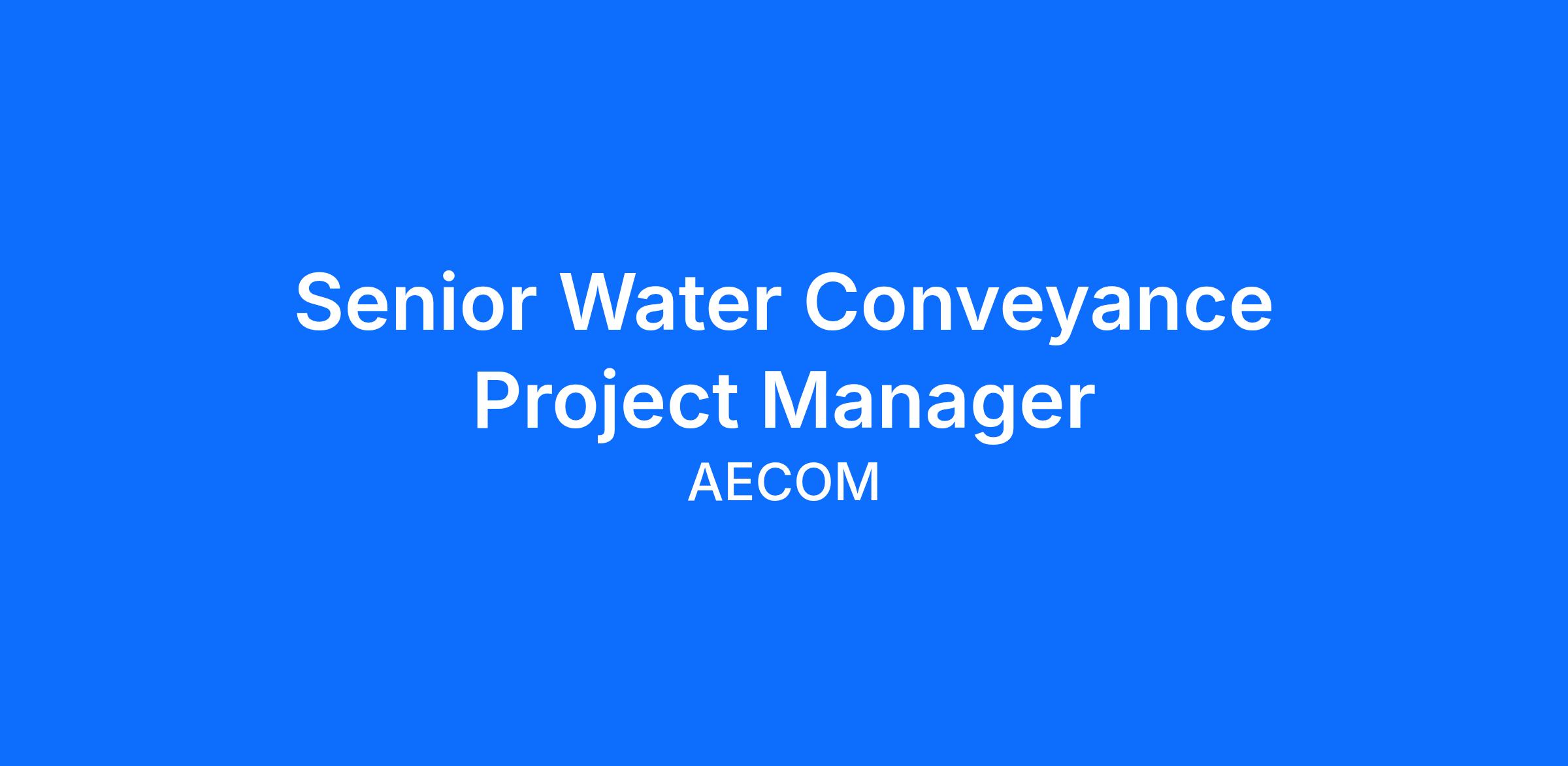 AECOM’s Water Business Line is seeking a talented Senior Water Conveyance Project Manager. This position will report to one of the AECOM offices in the United States including but not limited to Boston, MA; Buffalo, New York; Conshohocken, Pennsylvania; Germantown, Maryland; Rocky Hill, CT; or Chelmsford, MA. It is expected that this role will provide support to projects throughout the United States.