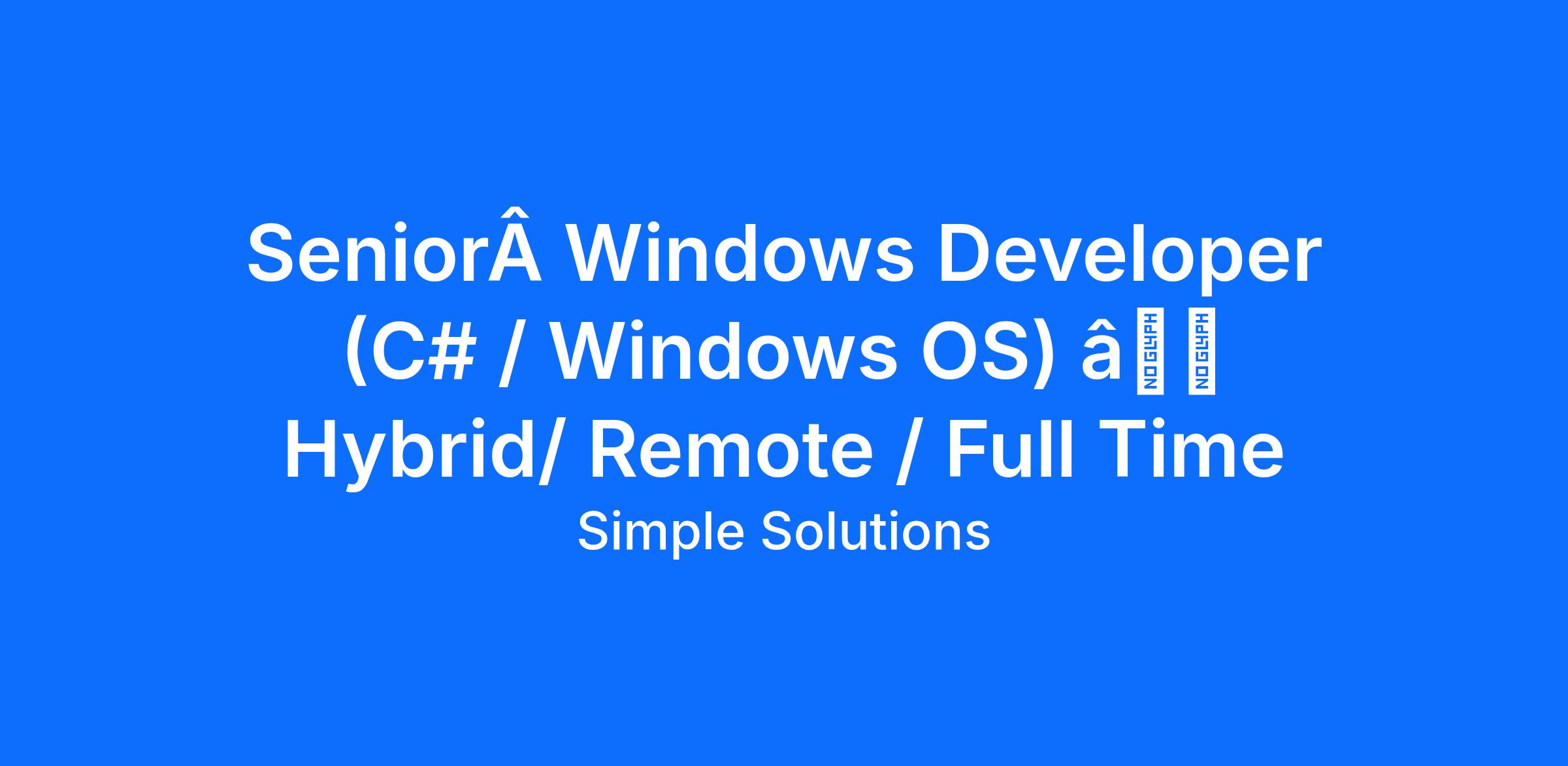 <\/html>"}}],"isMobile":false,"iframe":"true","jobType":"Contract to Hire","applyName":"Apply Now","zsoid":"662490260","FontFamily":"PuviRegular","jobOtherDetails":[{"fieldLabel":"Industry","uitype":2,"value":"Technology"},{"fieldLabel":"Job Opening ID","uitype":111,"value":"ZR_2832_JOB"},{"fieldLabel":"Work Experience","uitype":2,"value":"10+ Years"},{"fieldLabel":"Salary","uitype":1,"value":"$110\-$130K+Bonus"},{"fieldLabel":"City","uitype":1,"value":"Dallas"},{"fieldLabel":"State\/Province","uitype":1,"value":"Texas"},{"fieldLabel":"Zip\/Postal Code","uitype":1,"value":"75202"}],"headerName":"Senior Windows Developer (C# \/ Windows OS) â Hybrid\/ Remote \/ Full Time","widgetId":"441940000000072311","isJobBoard":"false","userId":"441940000000194003","attachArr":[],"customTemplate":"3","isCandidateLoginEnabled":true,"jobId":"441940000104645249","FontSize":"15","googleIndexUrl":"https:\/\/simplesolutions.zohorecruit.com\/recruit\/ViewJob.na?digest=y7aAKF2qOzvLOXeqB8tAB@aKOW5auHOpnN919CkYL14\-&embedsource=Google","location":"Dallas","embedsource":"CareerSite","indeedCallBackUrl":"https:\/\/recruit.zoho.com\/recruit\/JBApplyAuth.do","logoId":"60ly0a8d0c6dd592942c4b0bb6d05adacee99"}