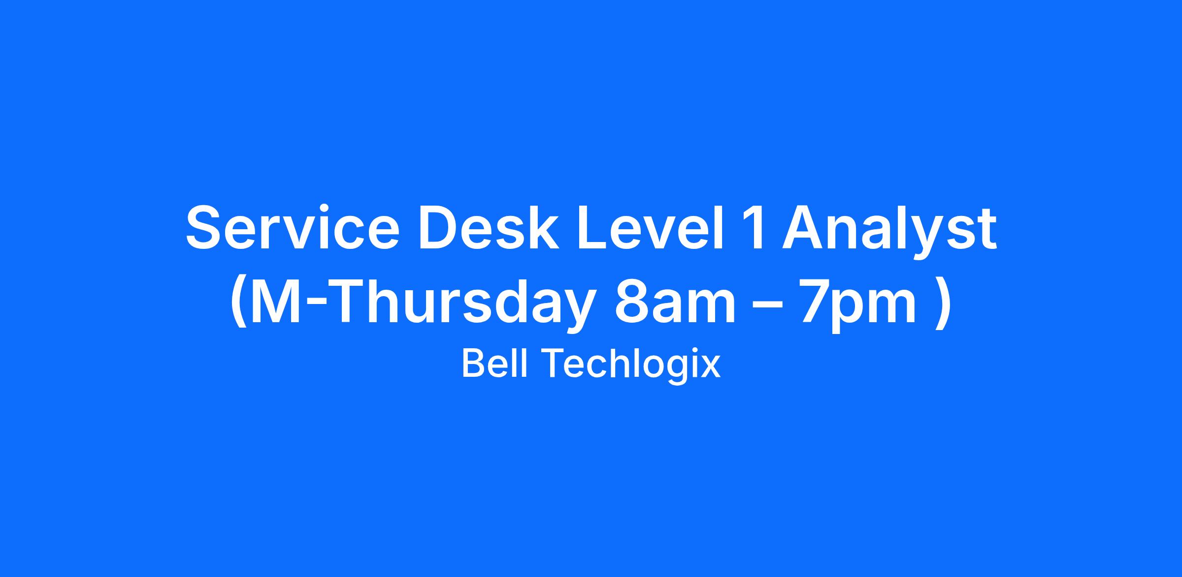Service Desk Level 1 Analyst (M-Thursday 8am – 7pm )