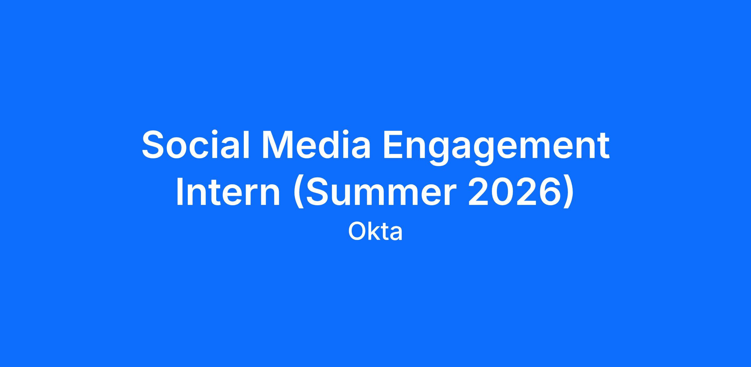 The Social Media Engagement Intern will be an integral part of the Okta and Auth0 Community Team within Customer Acceleration. This role is crucial for transforming our social channels (Okta/Auth0 Community, X, LinkedIn, Reddit, Instagram, Youtube and TikTok) into vibrant support ecosystems, empowering developers and IT professionals, and fostering a thriving community around Okta and Auth0 products. The intern will serve as a frontline content amplifier, driving engagement and supporting our community's growth programming.