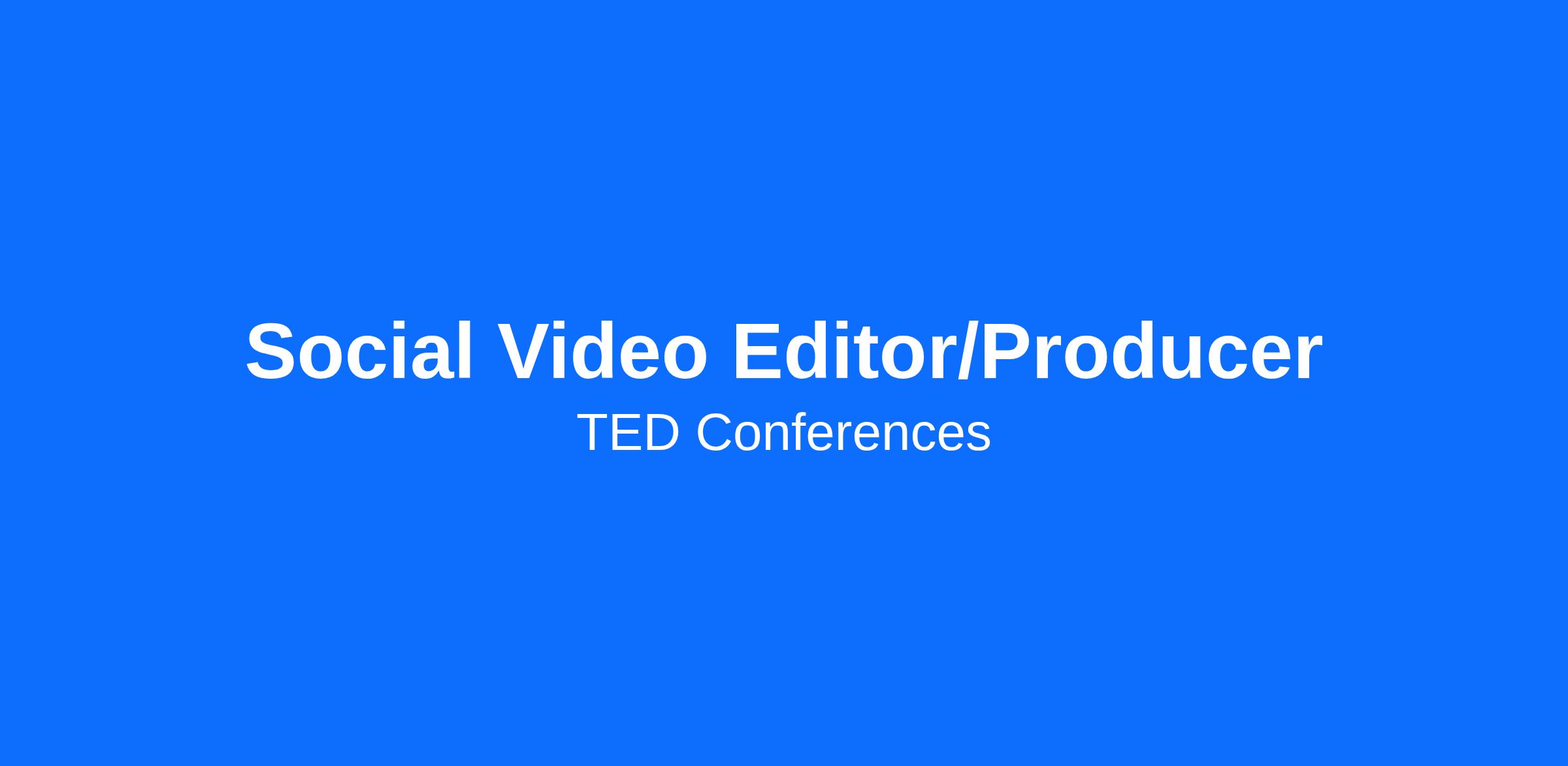 Are you a digital storyteller with a passion for spreading big ideas around the world? TED is looking for a social video editor/producer to join our team. Based at TED’s NYC office, this role is responsible for producing video assets across all of TED’s social media platforms. The ideal candidate is an eager and active participant in ideating fresh content opportunities for TED audiences, exploring new and emerging formats, and brings a keen eye for design and the latest trends in online storytelling.