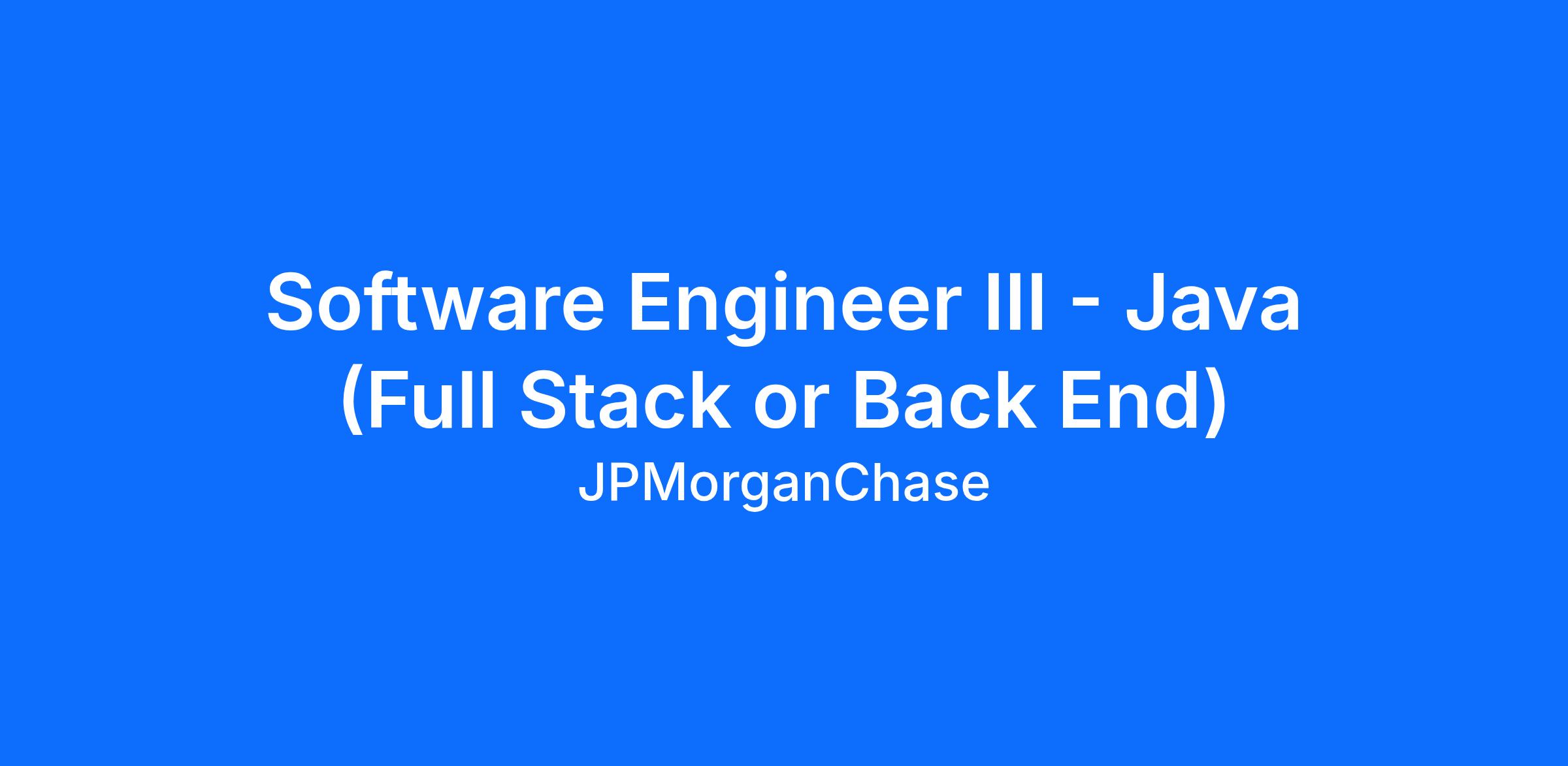 Software Engineer III - Java (Full Stack or Back End)