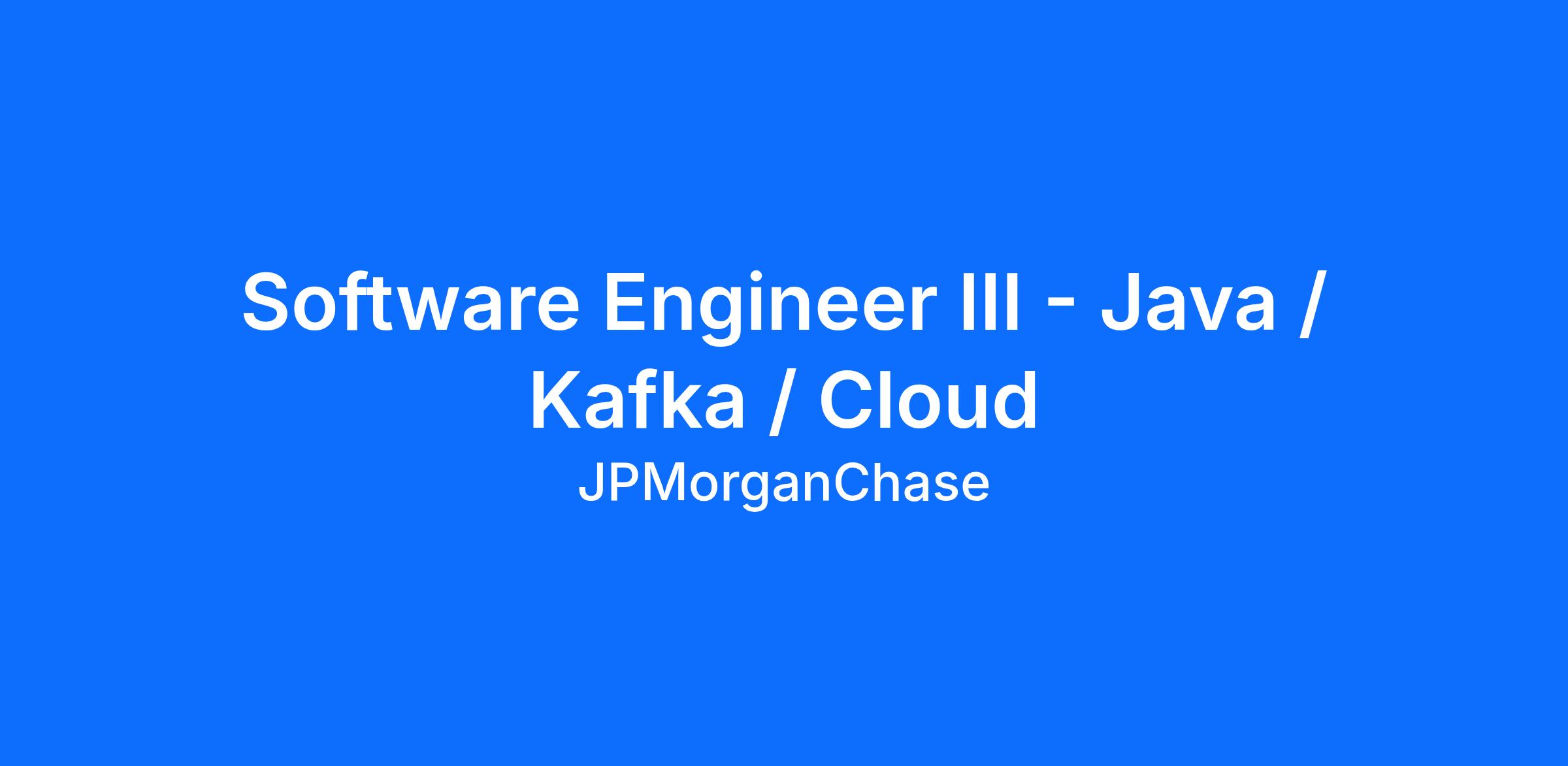 Software Engineer III - Java / Kafka / Cloud