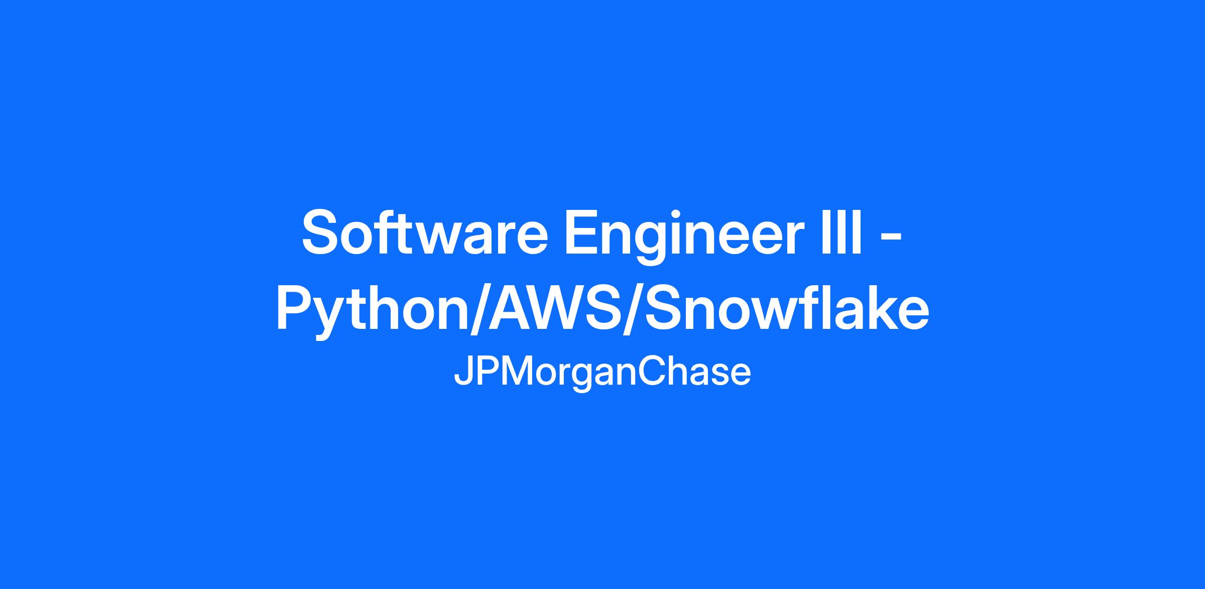 As a Software Engineer III - Python/AWS/Snowflake at JPMorganChase within the Data Platforms team, you serve as a seasoned member of an agile team to design and deliver trusted market-leading technology products in a secure, stable, and scalable way. You are responsible for carrying out critical technology solutions across multiple technical areas within various business functions in support of the firm’s business objectives.