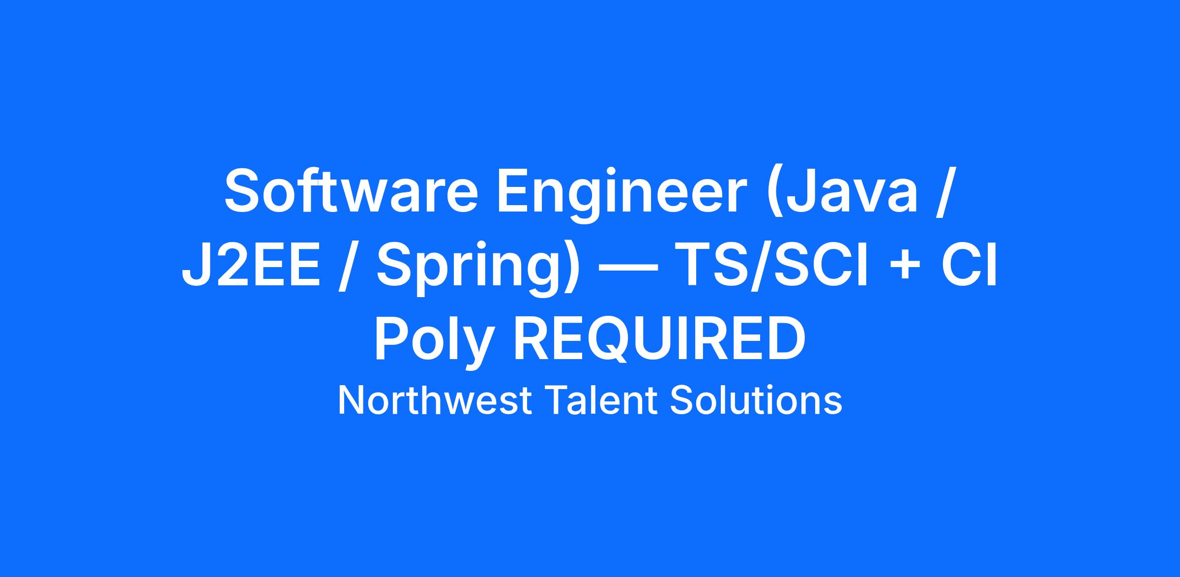 #TS_SCI #CIPoly #ClearedJobs #SoftwareEngineer #JavaJobs #J2EE #SpringBoot #DevSecOps #NationalSecurity #ICJobs #AnnapolisJunction #PolygraphJobs #TopSecretJobs #DefenseTech #NowHiring #ClearedCareers #NWTS