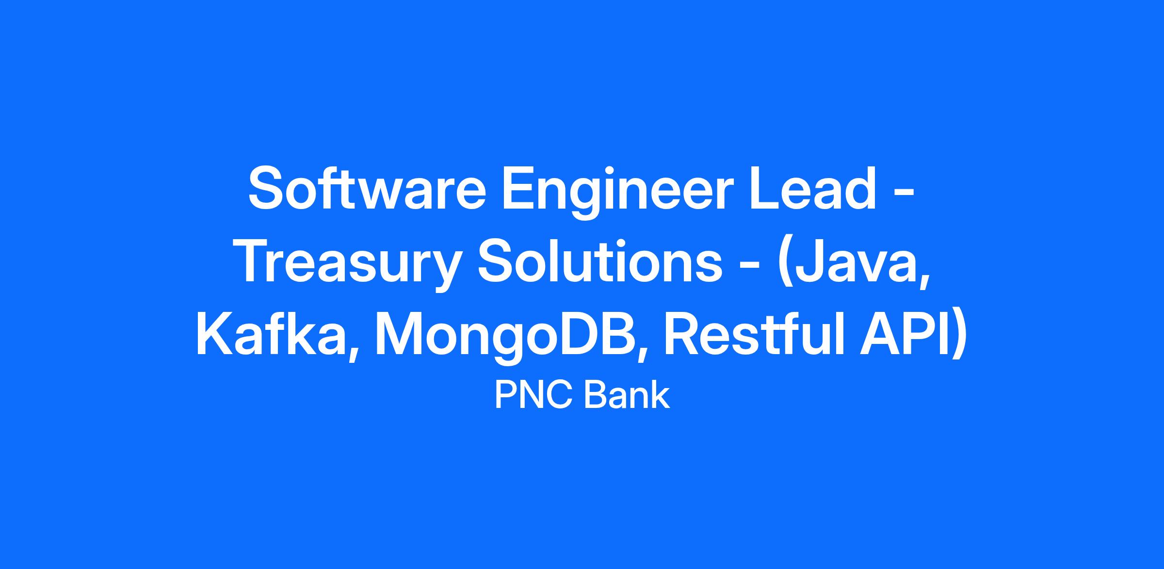 At PNC, our people are our greatest differentiator and competitive advantage in the markets we serve. We are all united in delivering the best experience for our customers. We work together each day to foster an inclusive workplace culture where all of our employees feel respected, valued and have an opportunity to contribute to the company’s success. As a Software Engineer Lead within PNC’s C&IB organization, you will be based in Pittsburgh, PA or Strongsville, OH or Dallas, TX. or Birmingham, AL.