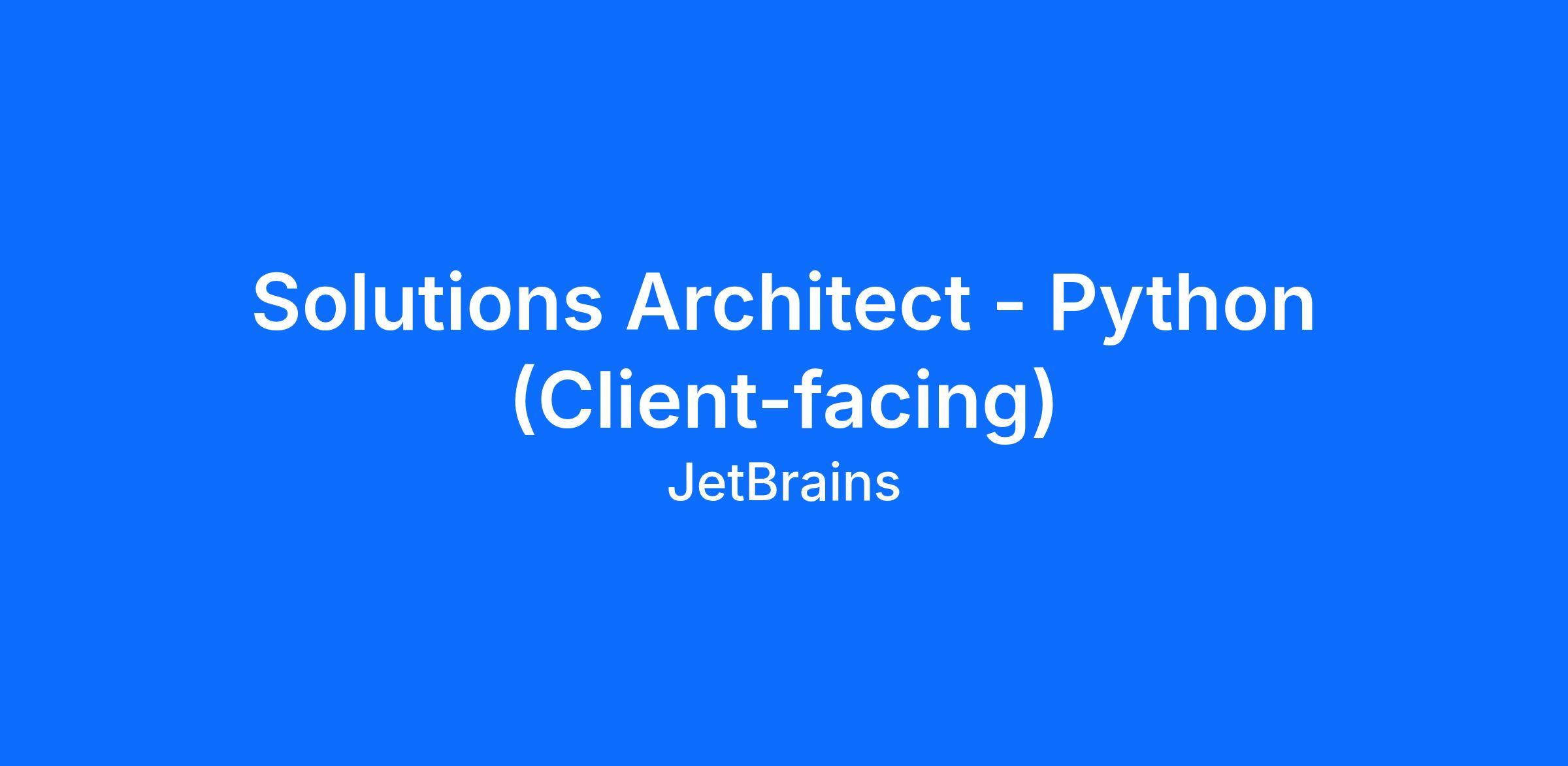 We’re looking for a Solutions Architect with deep expertise in Python and modern developer workflows to support our enterprise customers and help shape the future of Python development with JetBrains tools.
