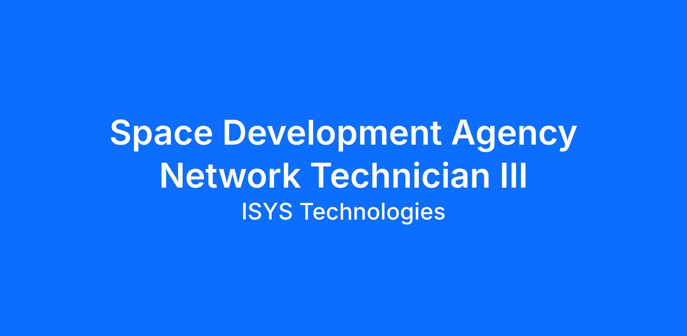 I2X Technologies is seeking a Space Development Agency Network Engineer III to support ongoing activities for a customer at Hill AFB, Utah. This position will be on-site and will require an active Secret clearance.