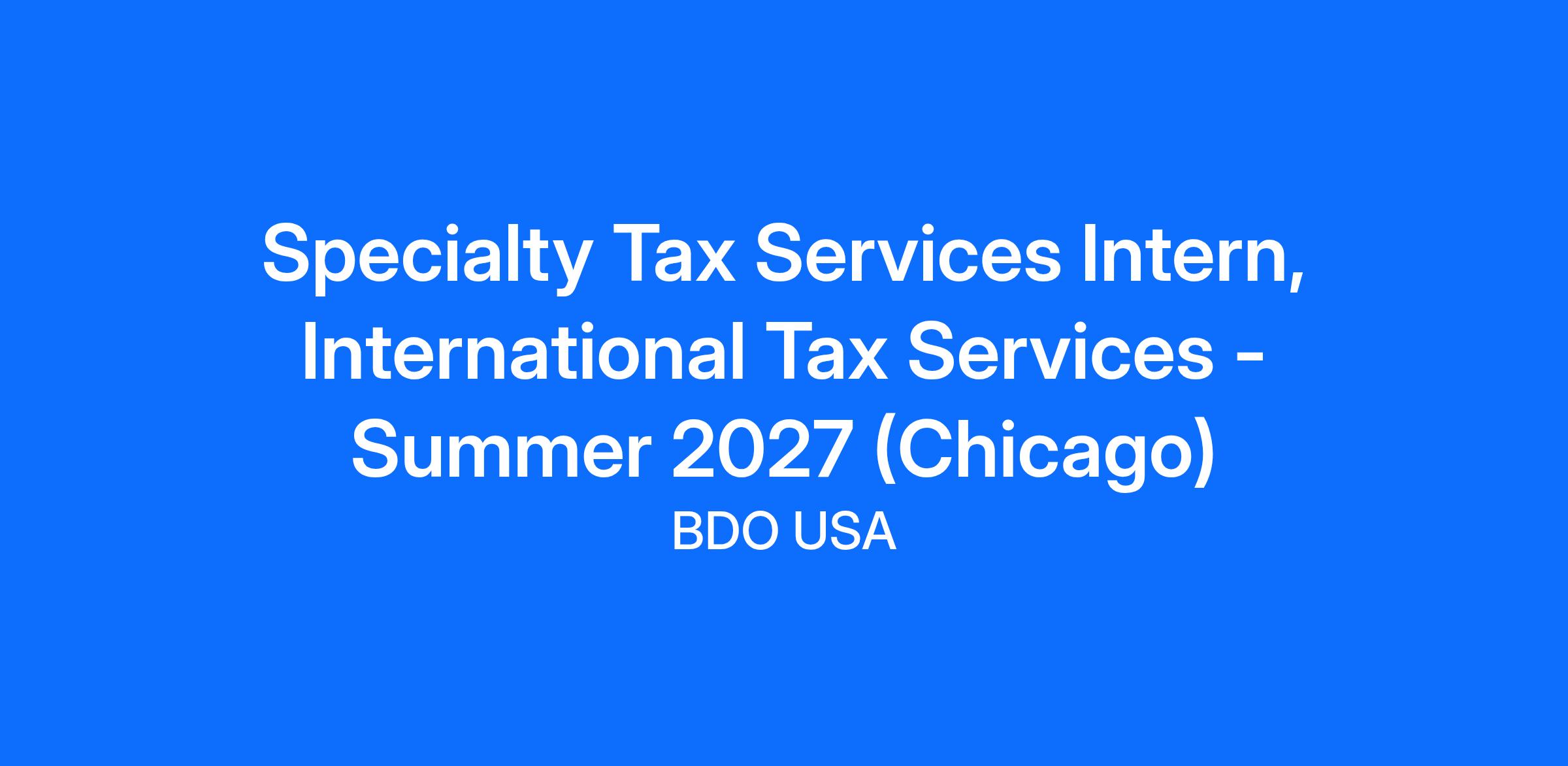 Specialty Tax Services Intern, International Tax Services - Summer 2027 (Chicago)