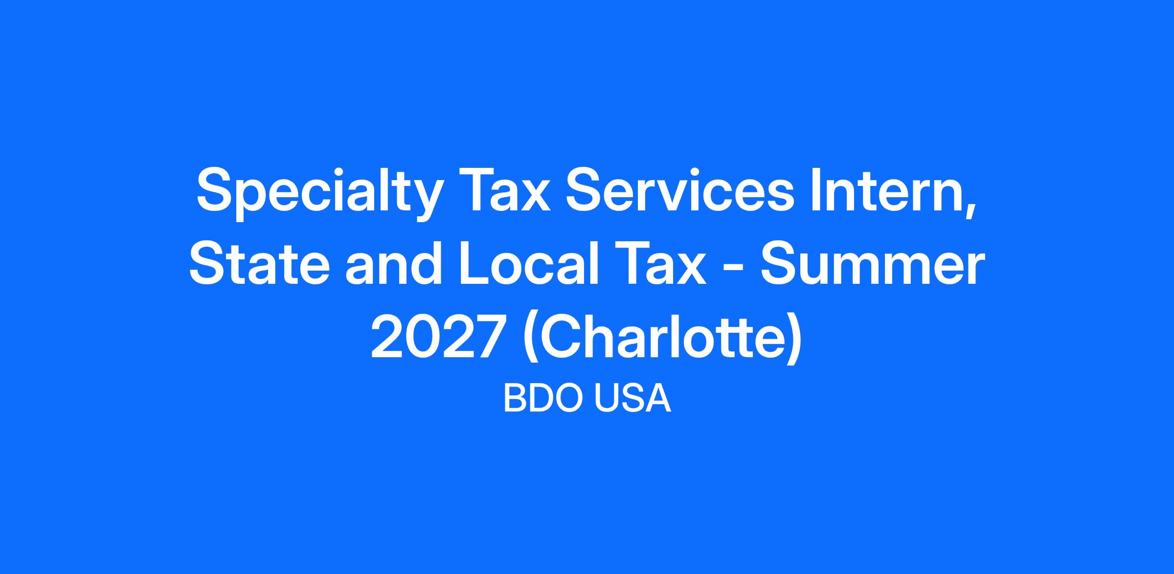Specialty Tax Services Intern, State and Local Tax - Summer 2027 (Charlotte)