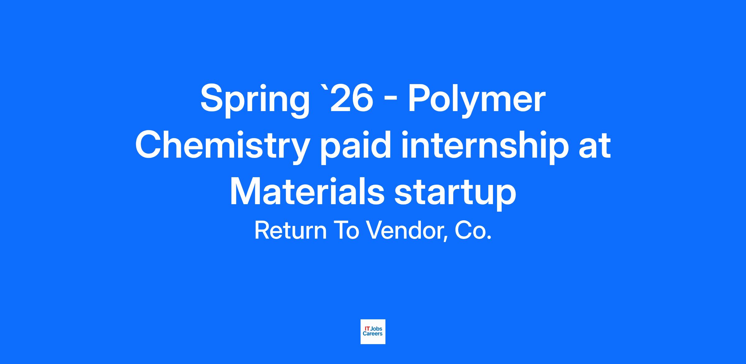 Return To Vendor, Co. is seeking a sharp and technically skilled Chemistry Intern to join our Technology team for a paid full-time Spring Internship at our lab in Watertown. This job may convert to full time. The successful candidate will have a strong foundation in bench chemistry skills and an affinity for testing materials meet specs. This internship offers an inquisitive person hands-on opportunity to learn and apply green recycling principles and see those changes in lab and industrial scale pilots. This is an in-person internship open to those who have graduated from an MA Undergrad or Masters program in the past 12 months, or who live in MA and have graduated from a college in the past 12 months.