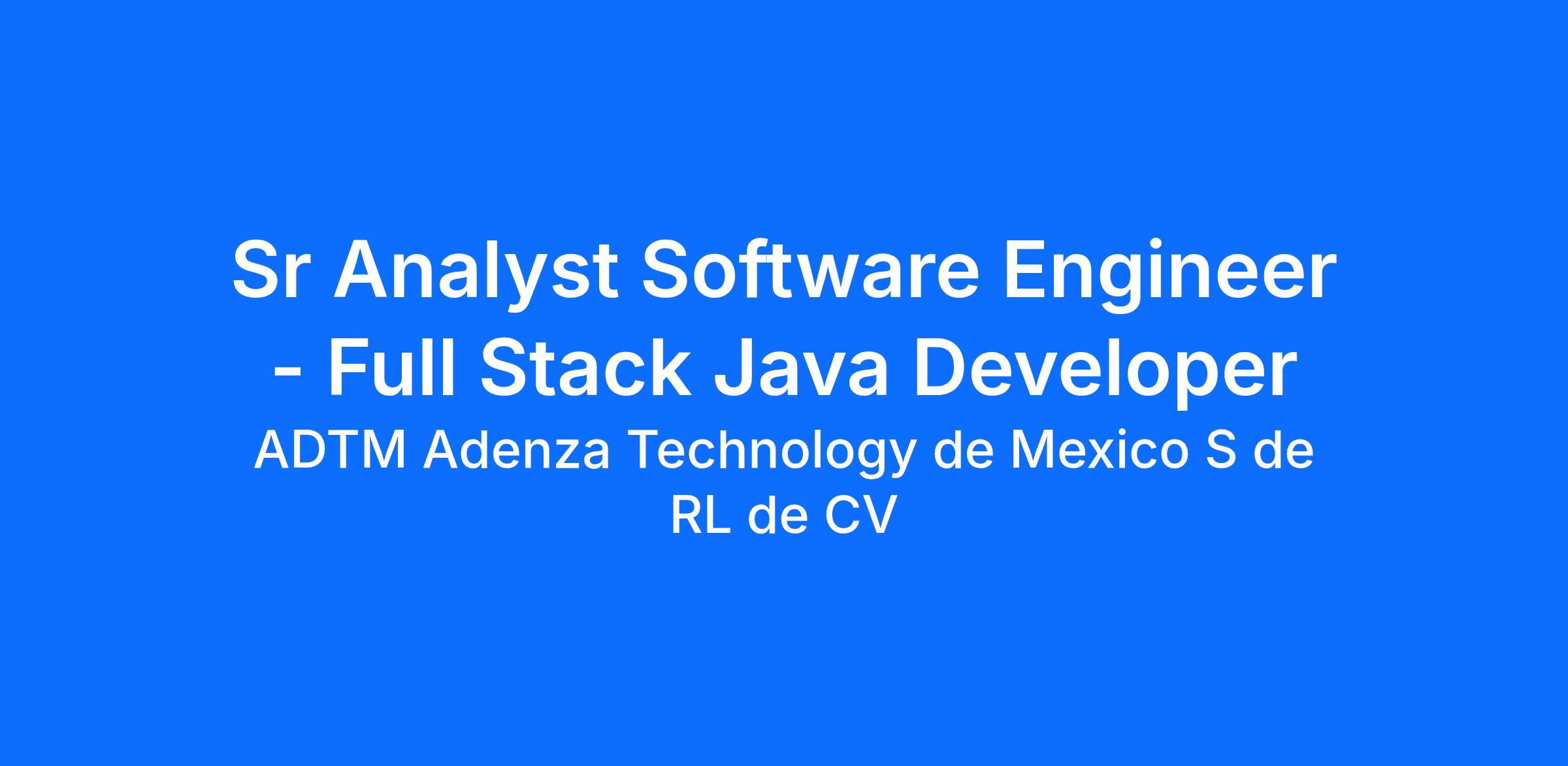 Sr Analyst Software Engineer - Full Stack Java Developer