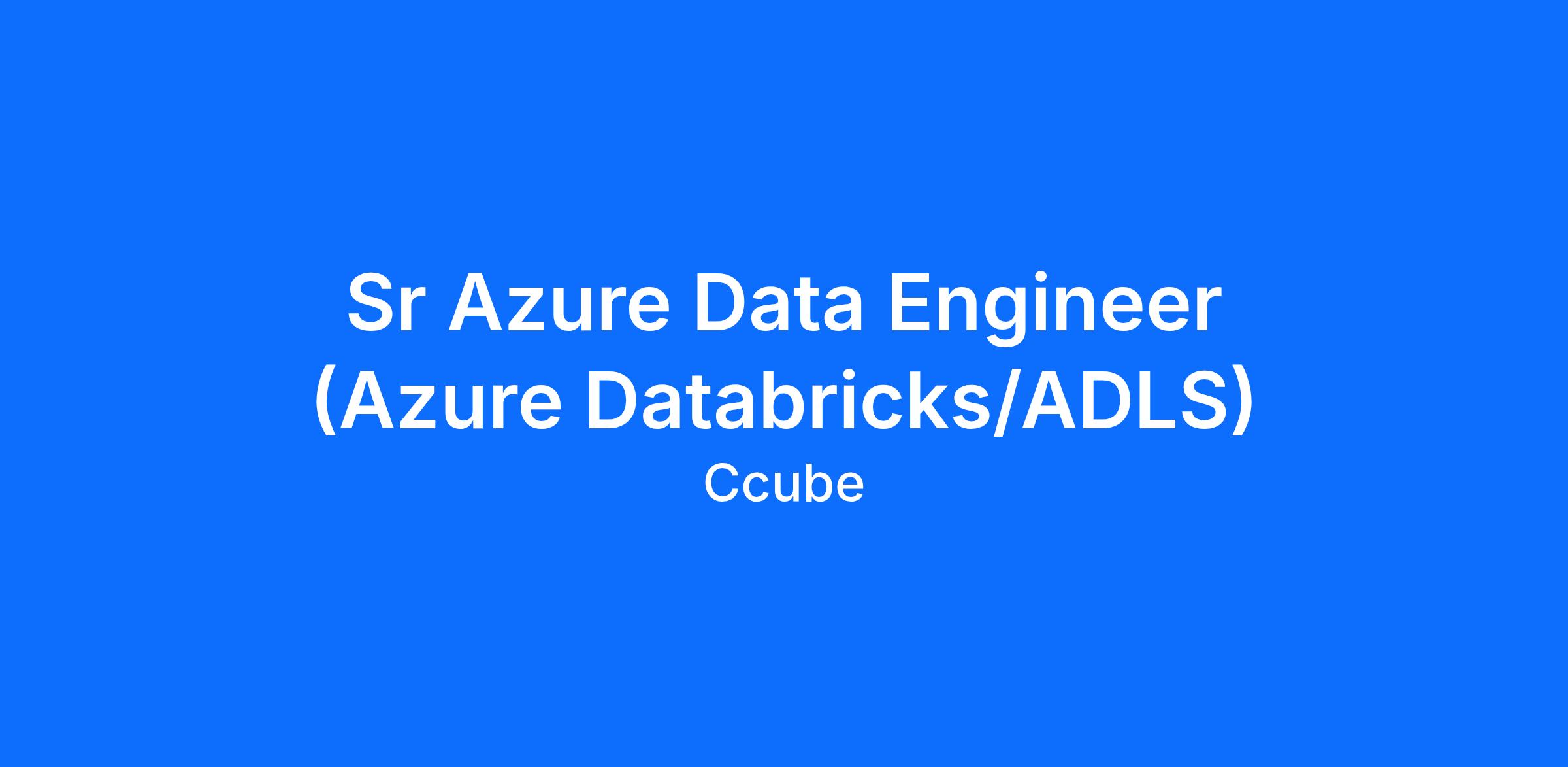 Job Title- : Sr Azure Data Engineer (Azure Databricks/ADLS) Location- Mississauga, ON (Hybrid) Role- Full Time/CTH