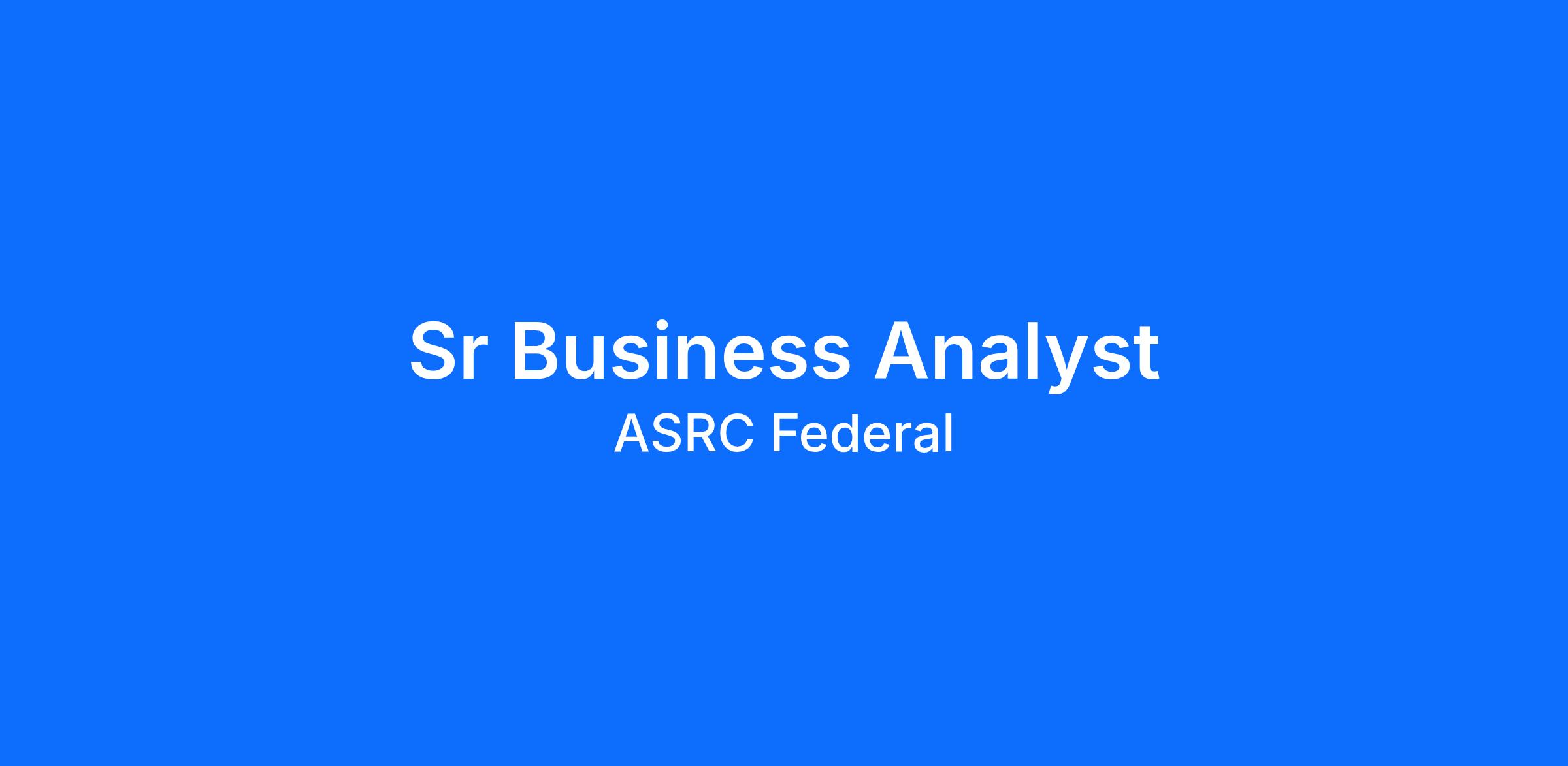 ASRC Agile Decision Sciences (ADS) is seeking a Sr. Business Analyst to support NASA programs.