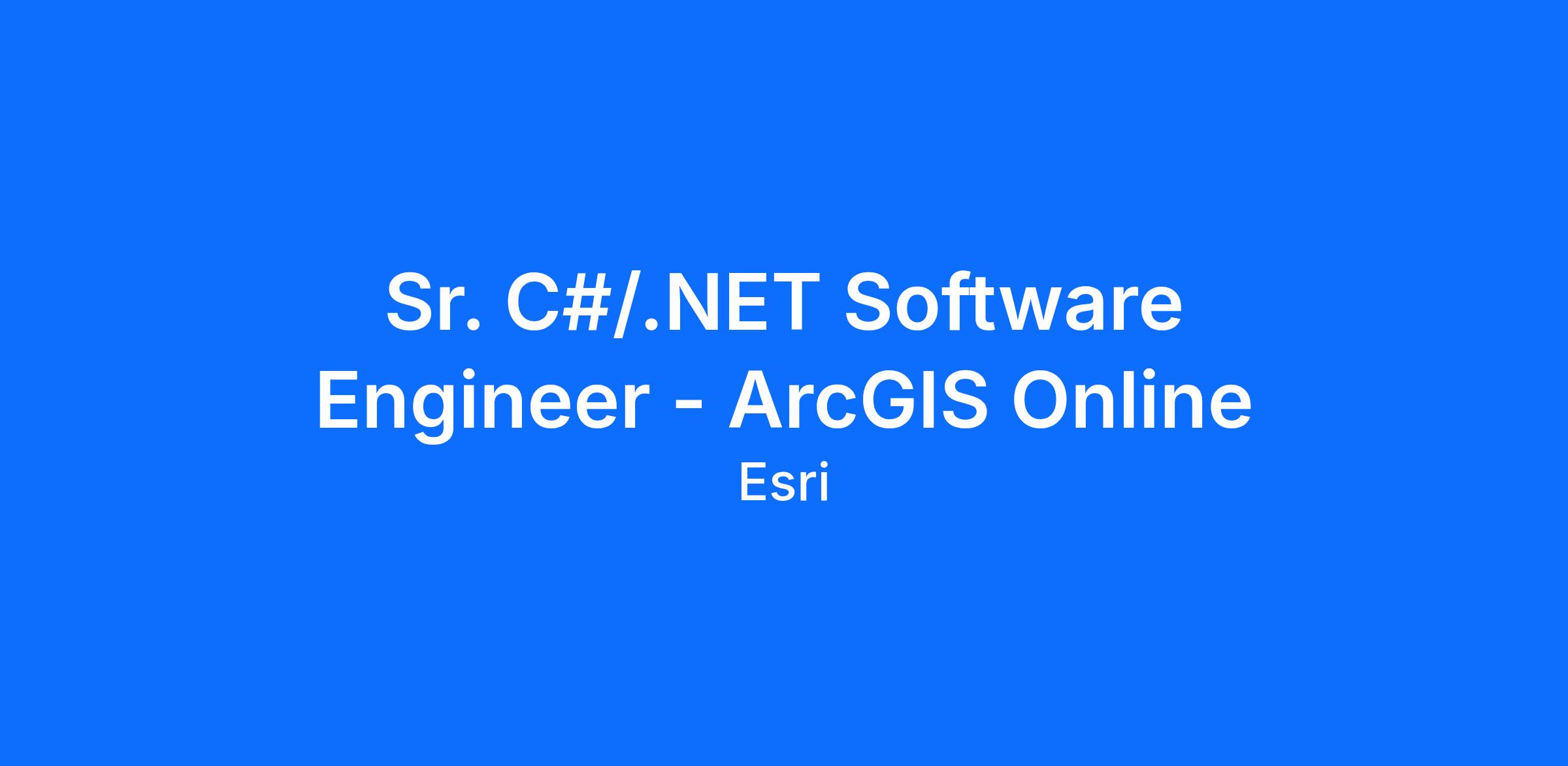 We welcome you to join our ArcGIS Online group (Azure), a product used by thousands of organizations around the world. Working at Esri will make a difference for good while maintaining infrastructure, managing natural resources, responding to disasters, and more.