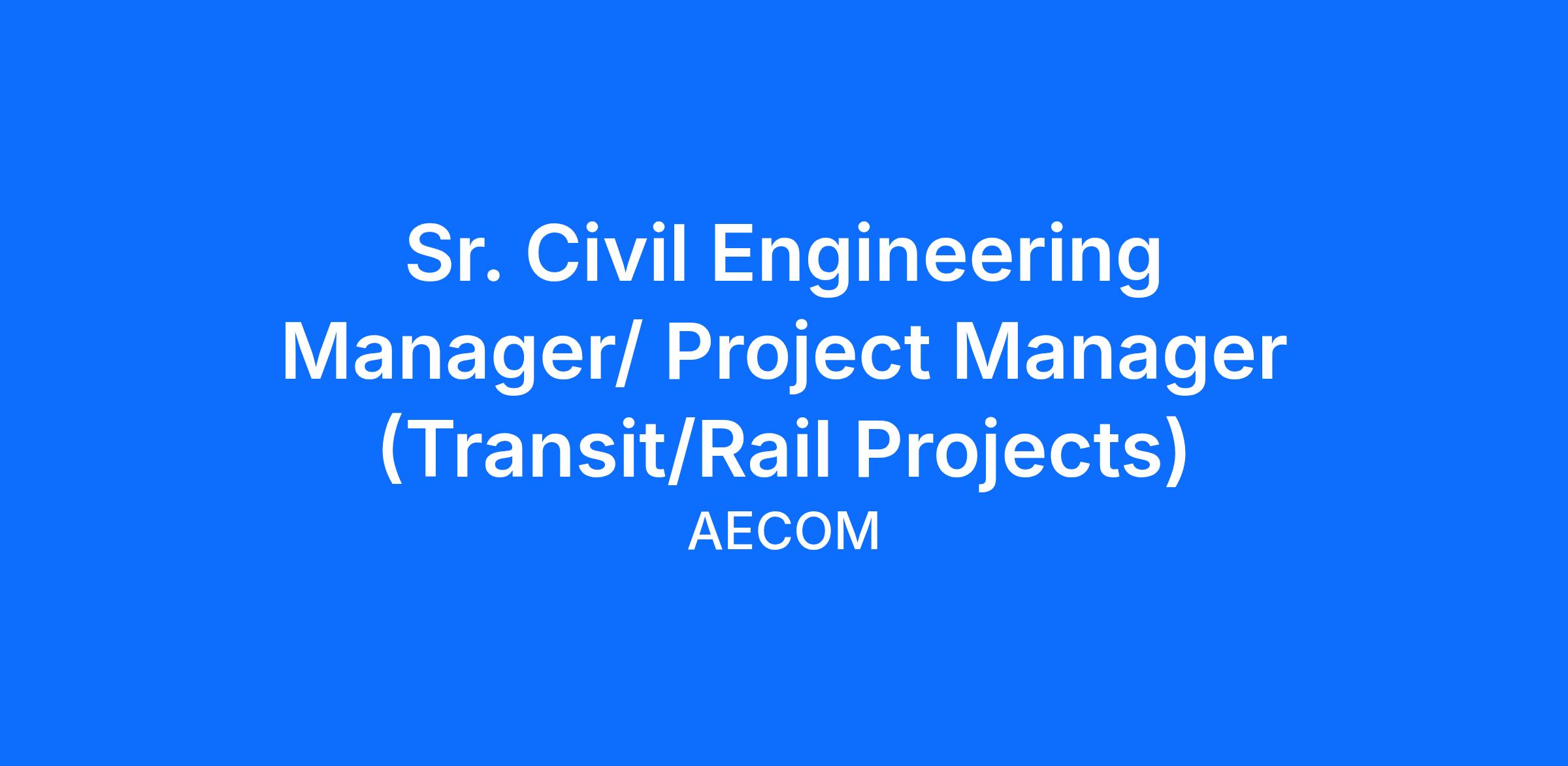 AECOM is seeking a Sr. Project Manager - Transit-Rail position in the Salt Lake, Denver, or Phoenix Office. This is a key position and will report to the US West Region Transit/Rail Engineering Department.