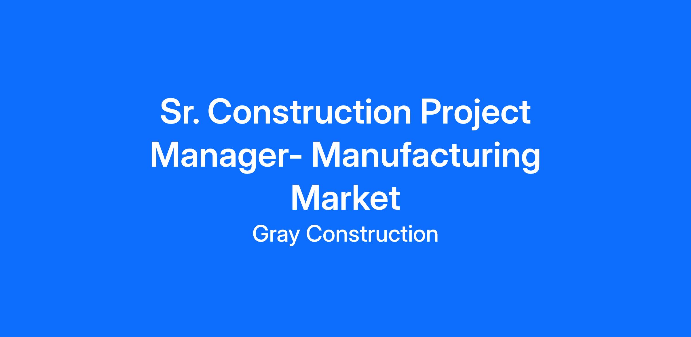 Gray Construction is looking to add a Senior Construction Project Manager- Manufacturing Market to their Charlotte, NC office.