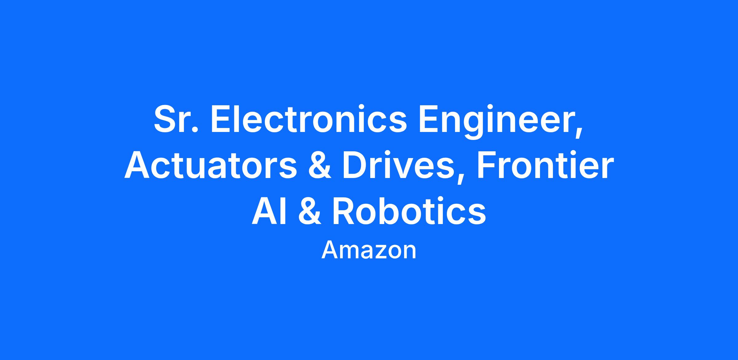 Join Amazon's Frontier AI & Robotics team and take ownership of the electronics that make our robots move. As a Sr./Staff Electronics Engineer, Actuators & Drives, you will conceptualize, design, and test the motor drive electronics that power our in-house robotic actuators—from the gate drivers and power stages that command motor current to the sensing circuits and communication interfaces that give our robots proprioceptive awareness. Your printed circuit board (PCB) designs will live inside each of our next-generation robotic systems, directly enabling the embodied intelligence that is central to FAR's mission.
