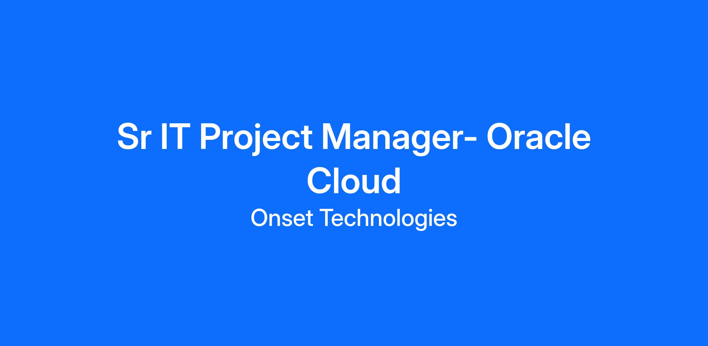 Sr IT Project Manager- Oracle Cloud