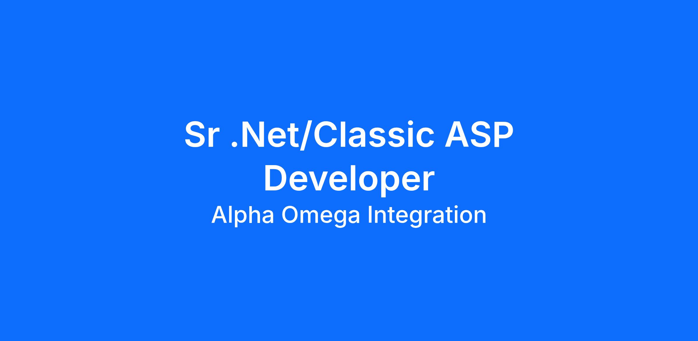 Alpha Omega is seeking a highly skilled Sr .Net ASP Developer/Classic ASP Developer for a Remote position on one of our prime Federal projects in Arlington, VA.