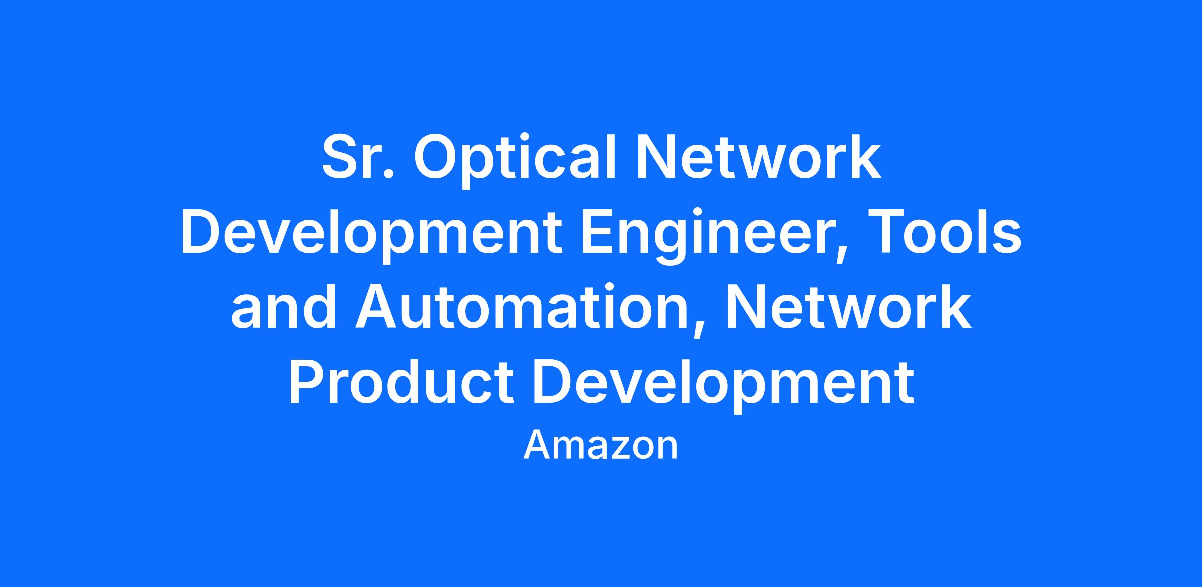 The Core Networking team is looking for a Optical Network Development Engineer to join our Network Product Development (NPD) team. As an Optical Network Development Engineer with a focus on Tools and Automation, you will be responsible for building, deploying and scaling the Amazon networks that support AWS, customers, and other business units, across multiple global data centers. AWS Core Networking is focused on building Data Centers and the network that allows Data Centers to function efficiently. They own the solutions that allow racks to be aggregated and Data Centers to be interconnected. Core Networking’s goal is to balance efficiency, performance and reliability to allow customers access to their applications and data.
