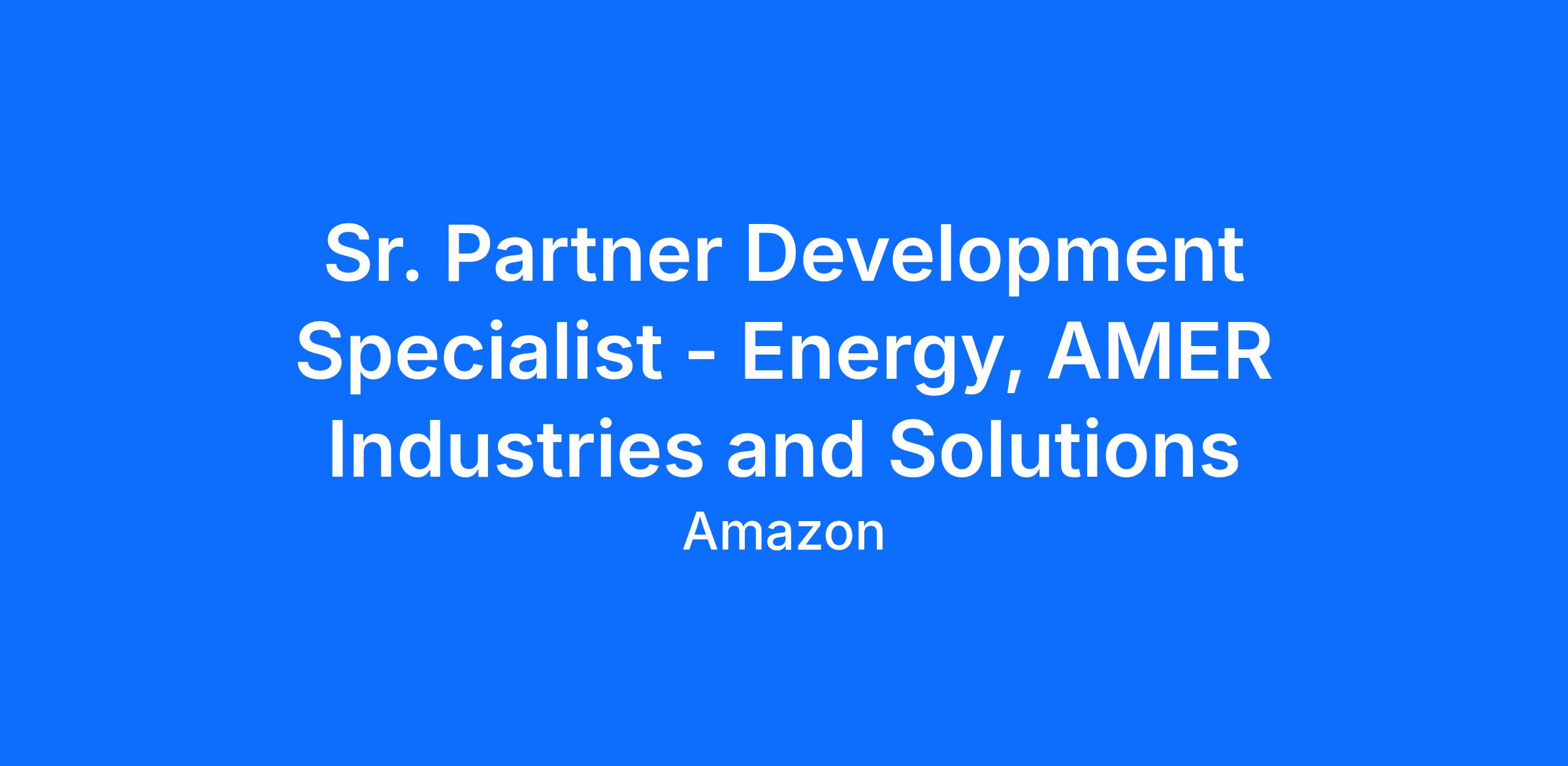 The AMER Industries and Solutions Team consists of Industry domain specialists, who drive the regional Industry partner strategy to grow our business through partners. As the AMER Industry PDS for the Energy segment, you will be part of this team, owning & managing the Energy Partner strategy, driving go to market, and building deep capability and capacity through strategic industry partners.