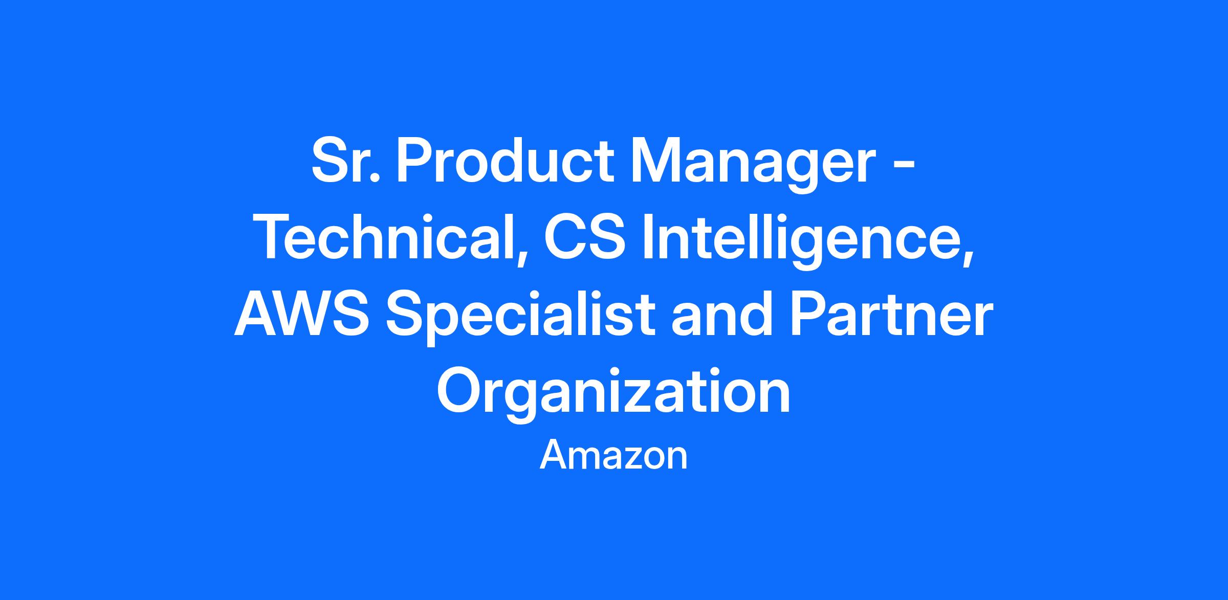 As a Senior Product Manager-Technical on the Customer Success (CS) Intelligence team within the AWS Specialists & Partners (ASP) org, you will architect and drive the development of AWS' next-generation CS intelligence stack and AI-powered agents. This dual mandate encompasses building a unified data foundation that enables real-time visibility into AWS service usage and customer value realization, while pioneering autonomous CS agents that proactively drive adoption and business outcomes for customers. You will transform AWS' post-launch customer journey through intelligent automation, predictive insights, and scalable agent-led workflows that set new standards for enterprise customer success.