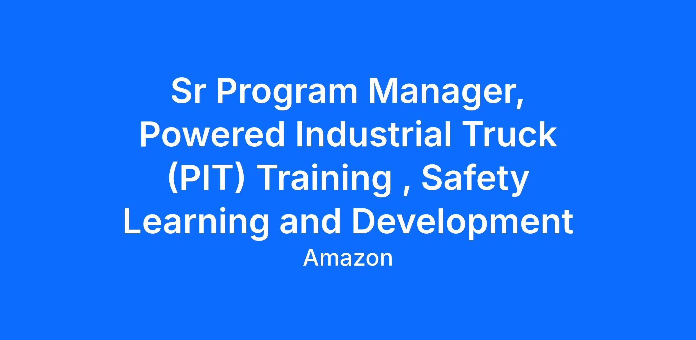 Amazon is seeking an experienced and enthusiastic Senior Training Manager to lead global Powered Industrial Truck (PIT) Training within the Workplace Health & Safety (WHS) organization.