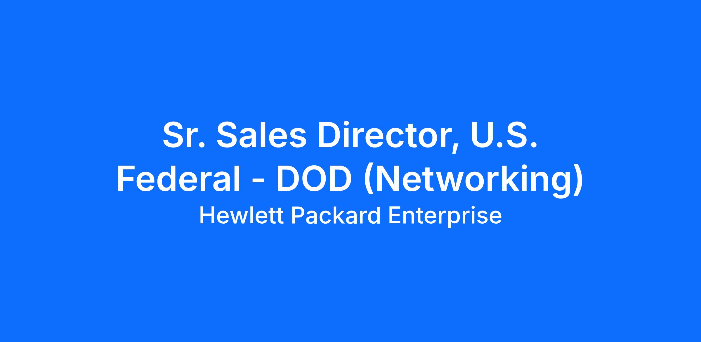 The Sr. Sales Director, U.S. Federal – DoD (Networking) leads the strategy and execution to grow networking revenue, pipeline, and market share across the U.S. Department of Defense (DoD). This role drives a comprehensive DoD go-to-market plan across all service branches and DoD agencies/commands (e.g., Army, Air Force, Navy/Marine Corps, DISA, Combatant Commands, and Fourth Estate agencies) and partners closely with Systems Engineering, product/BU leaders, and the channel ecosystem to win and expand complex networking opportunities.