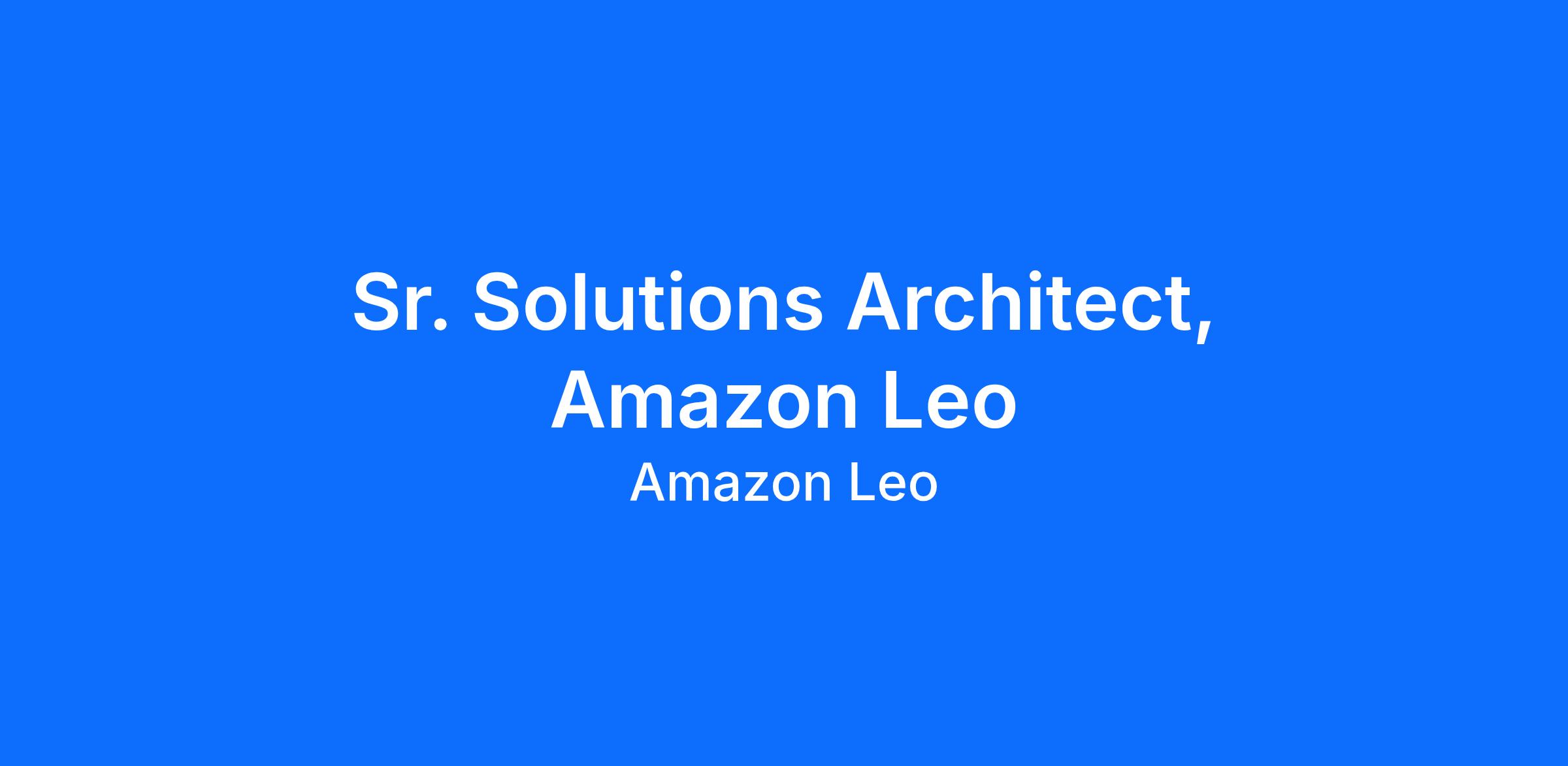 Sr. Solutions Architect, Amazon Leo