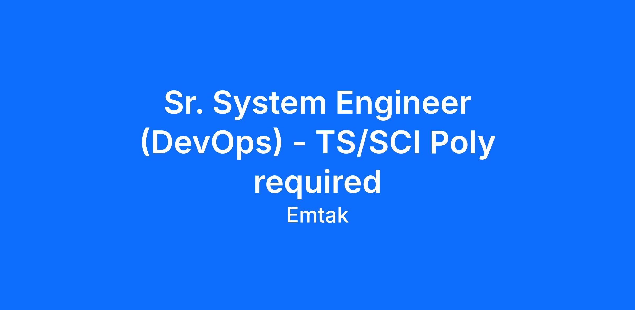 Sr. System Engineer (DevOps) - TS/SCI Poly required