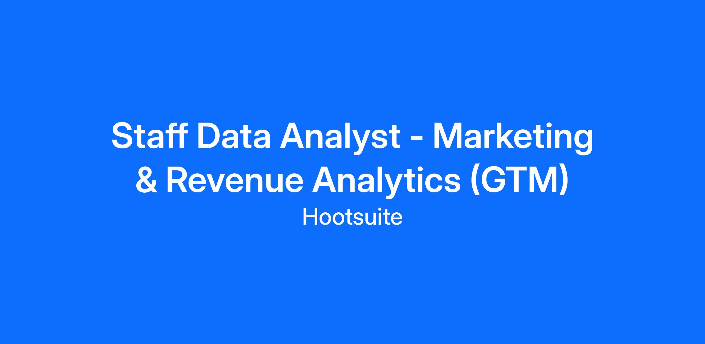 The Staff Data Analyst - Marketing & Revenue Analytics (GTM) acts as the strategic bridge across our entire revenue organization—spanning Marketing, Sales, and the Customer Office. Unlike traditional analyst roles that focus on a single silo, this position demands a holistic thinker who can trace the data thread from the first marketing click to the renewal contract.