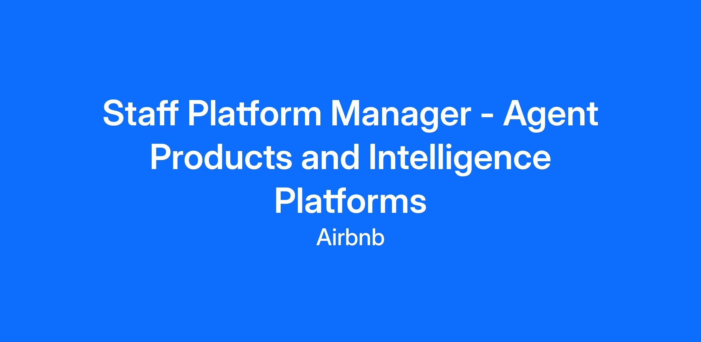 The Agent Products and Intelligence Platforms team is looking for a Staff Platform Manager, who will be responsible for building AI capabilities and horizontal AI tools in support of our CS agents as well as various AI products. This role is instrumental in advancing Airbnb’s CS organization by creating robust, scalable, and efficient intelligent components. The platforms and tools under this scope will play a pivotal role in empowering our agents and enhancing the overall customer support experience.