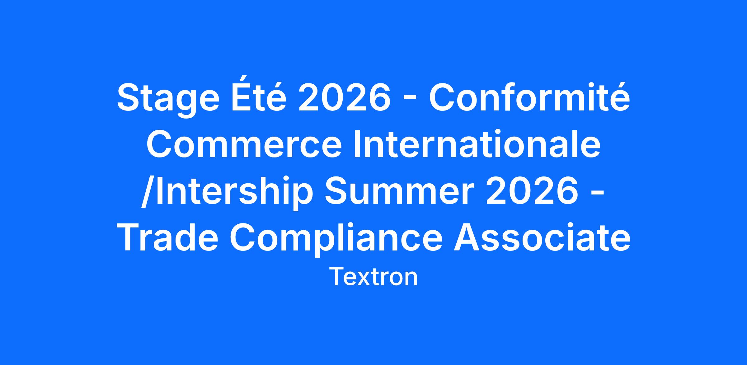 Stage Été 2026 - Conformité Commerce Internationale /Intership Summer 2026 - Trade Compliance Associate
