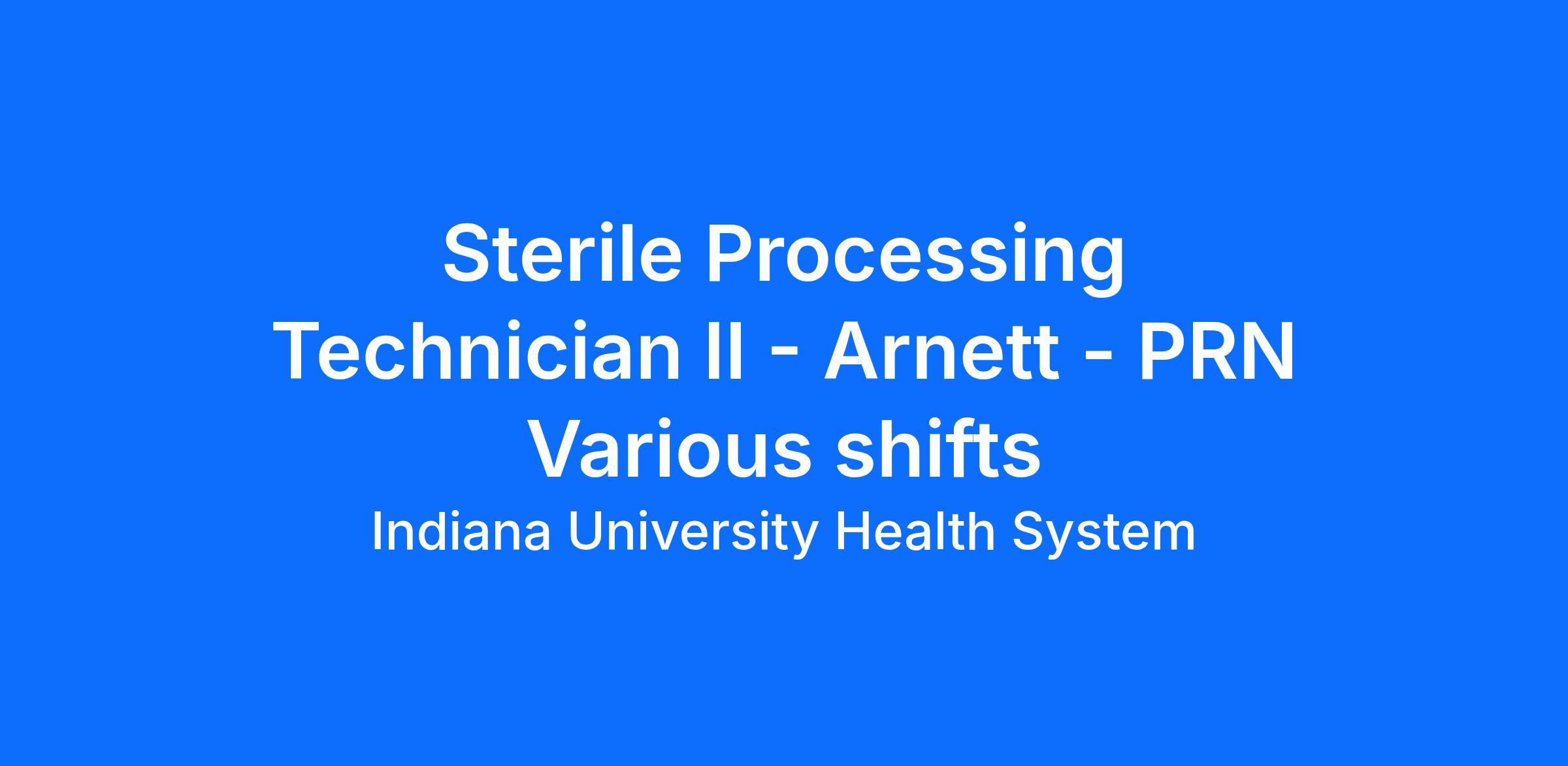 Sterile Processing Technician II - Arnett - PRN Various shifts