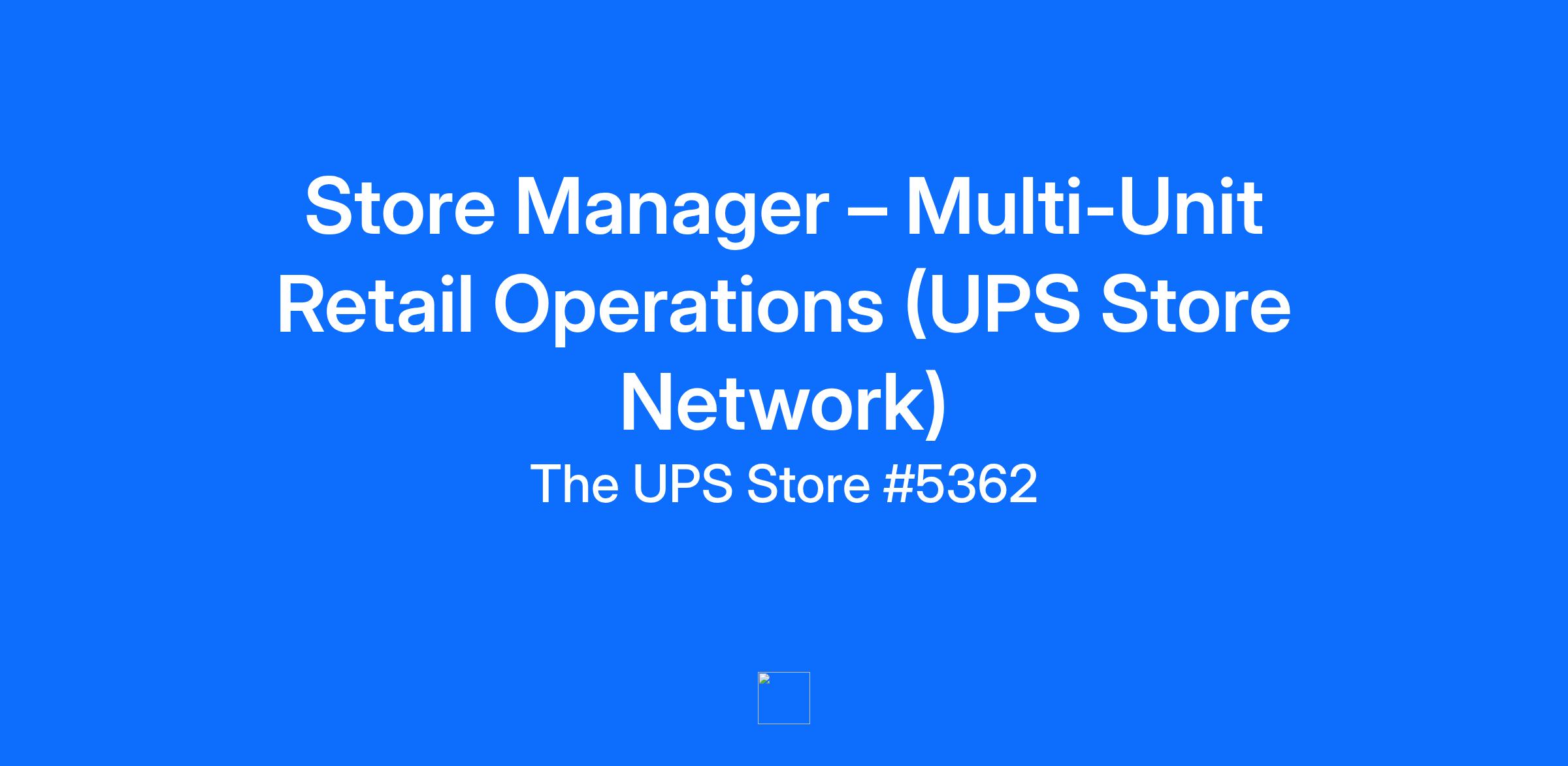 Store Manager – Multi-Unit Retail Operations (UPS Store Network)