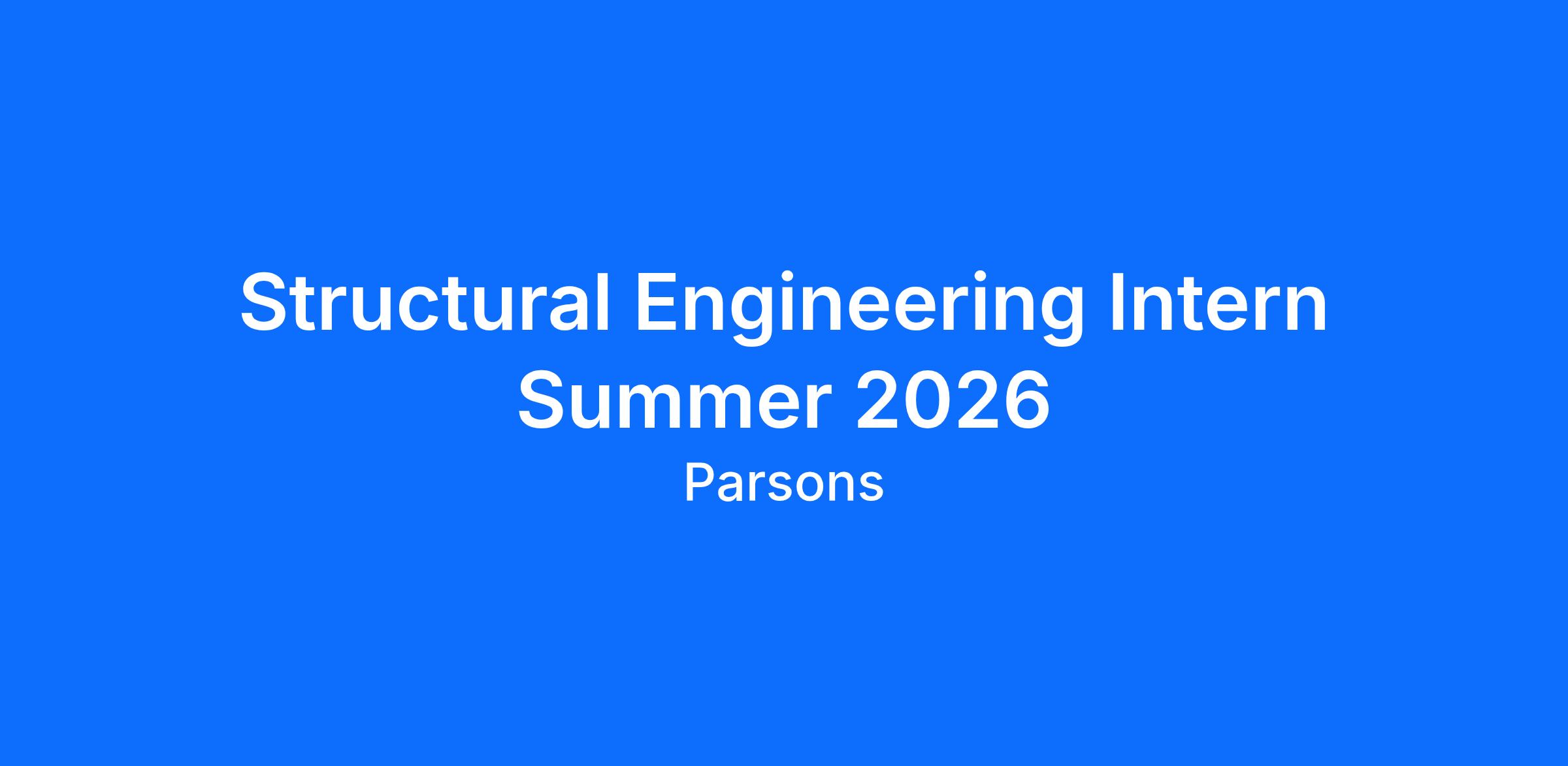 Parsons is looking for an amazingly talented 2026 Structural Summer Intern to join our team! In this role you will get to perform a variety of basic to moderately difficult assignments under the direction of a degreed engineer.