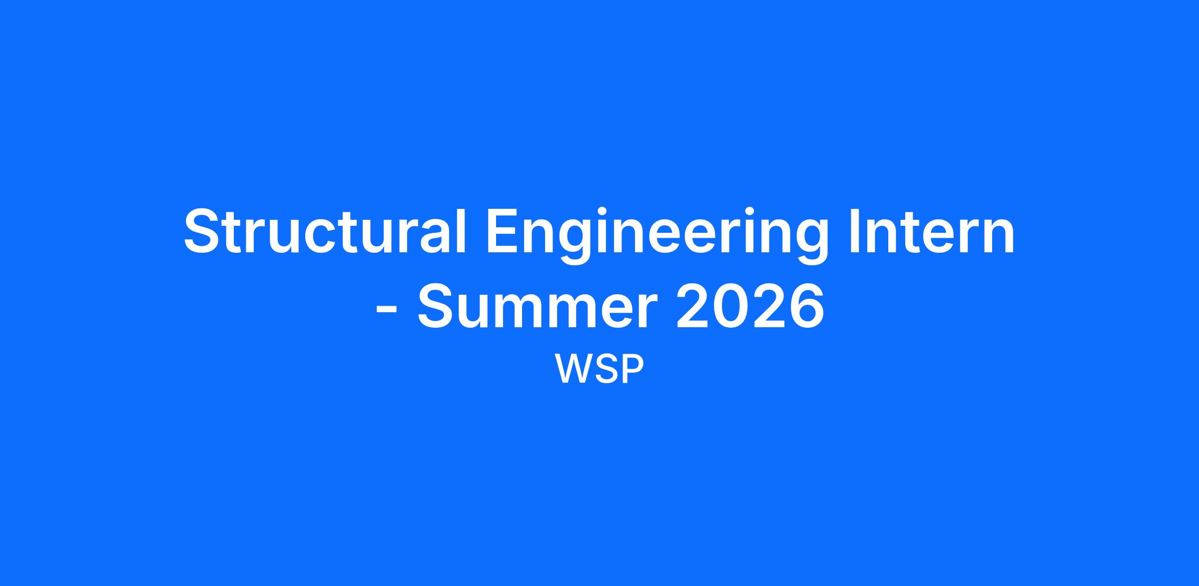 - Demonstrated interest in Structural Engineering, or related field, and have a strong desire to advance skills related to WSP’s work and projects.